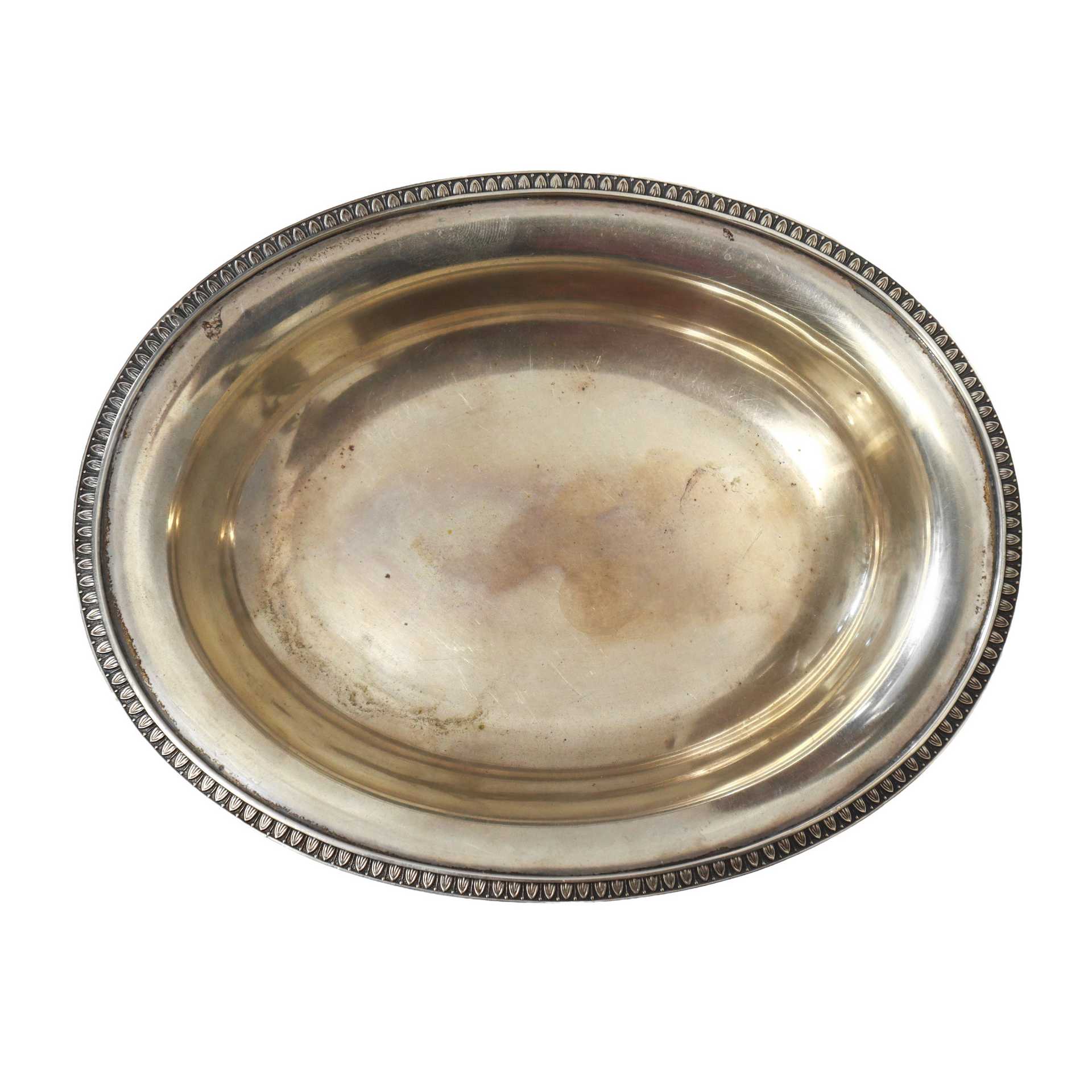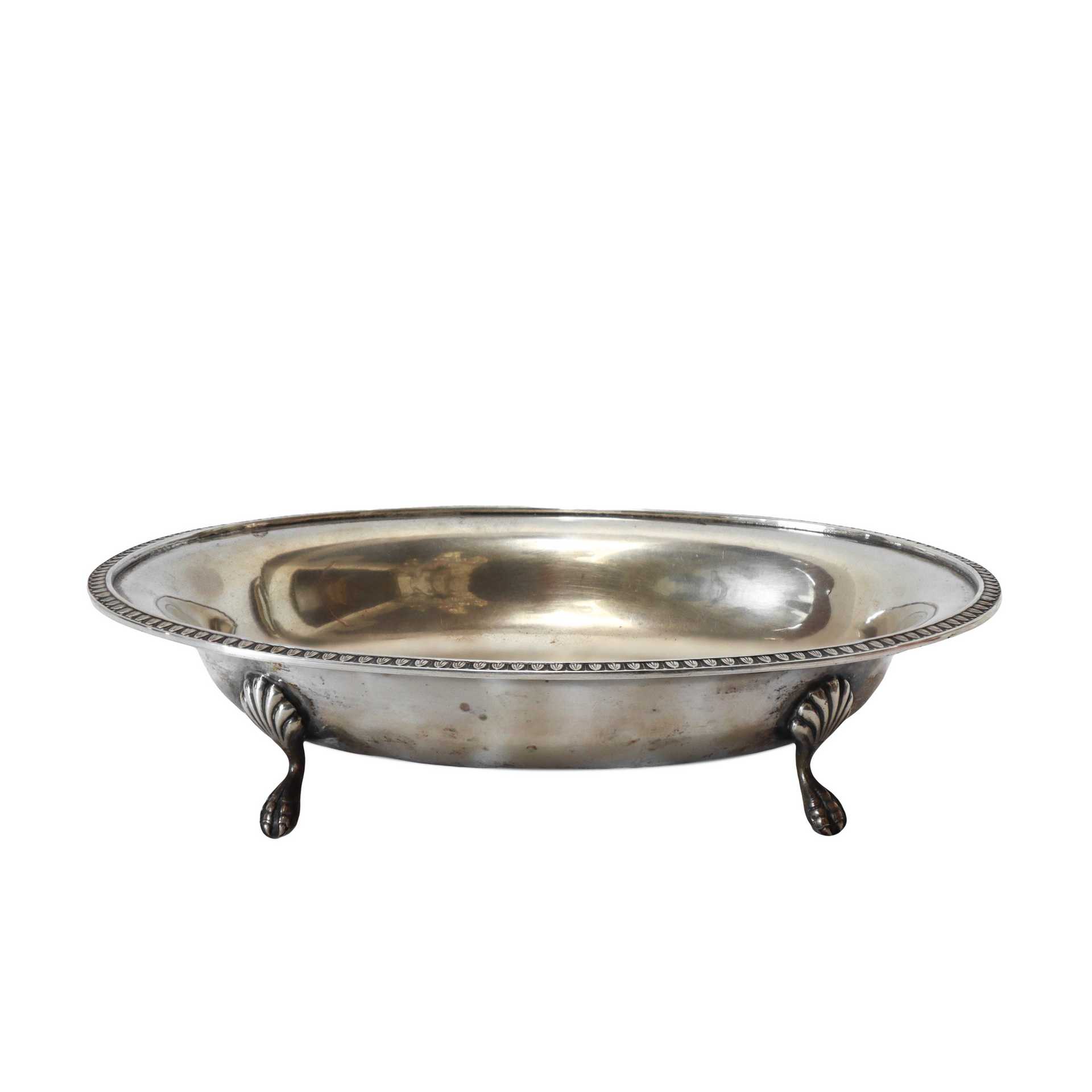 Ciotola ovale in argento 800 Gr 266. H cm 5x21x16,5 Piedi leonini, bordo con foglie lanceolate. Punzoni sotto bordo.Piedi leonini, bordo con foglie lanceolate. Punzoni sotto bordo.
