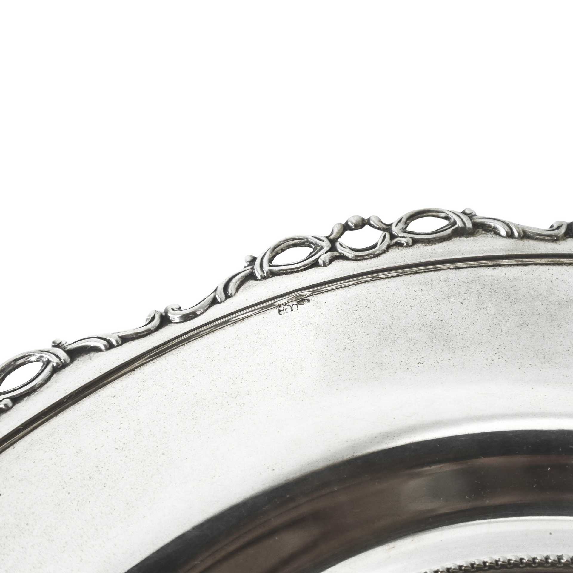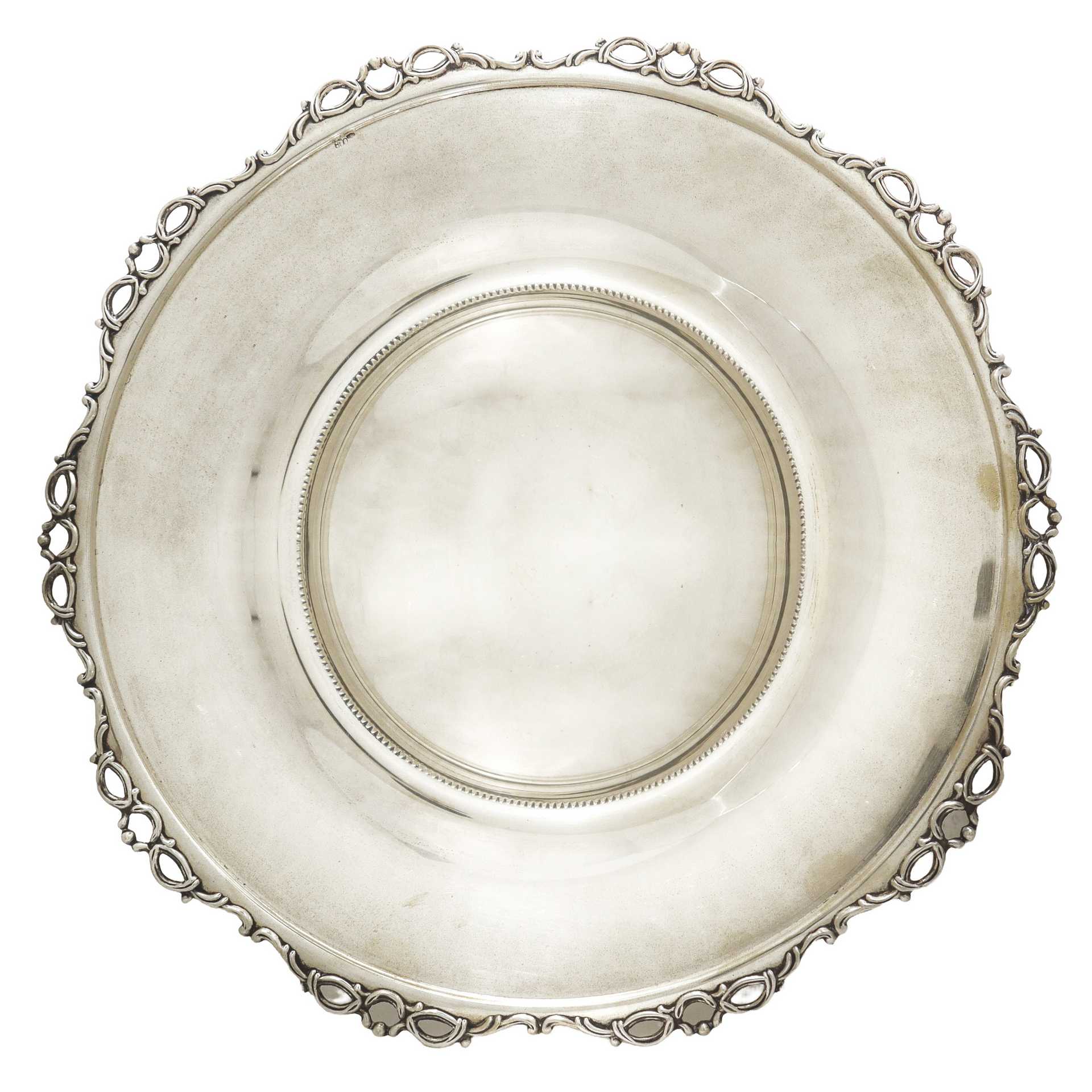 Alzata in argento 800, con bordi e piedi decorati