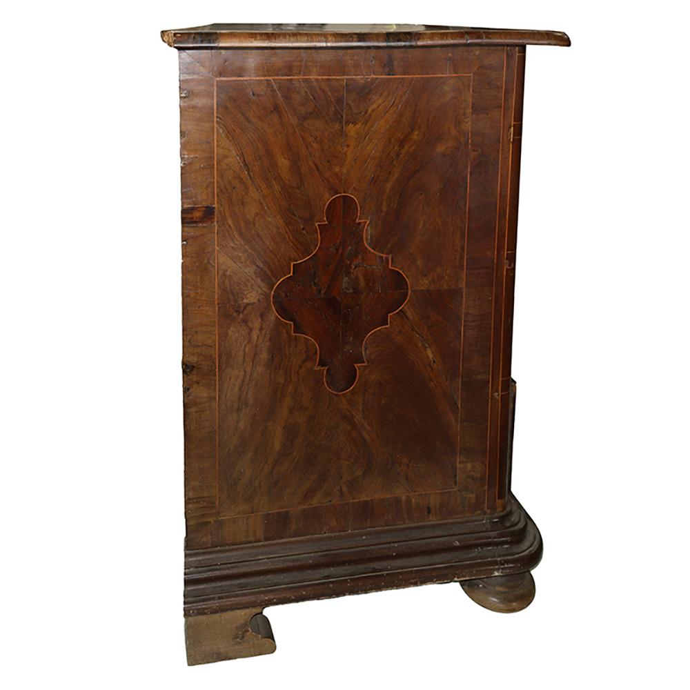 Cassettone Lugi XV maltese quattro cassetti piano in radica di ulivo e noce