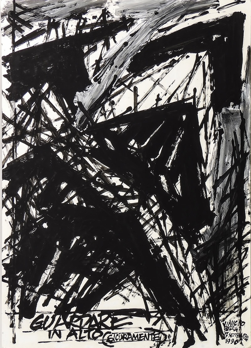 VINICIO BERTI (1921-1991) Guardare in alto (sicuramente) 1990 acrilico su cartoncino - acrylic on cardboard, firmato e datato 7 settembre 1990 cm 100x70