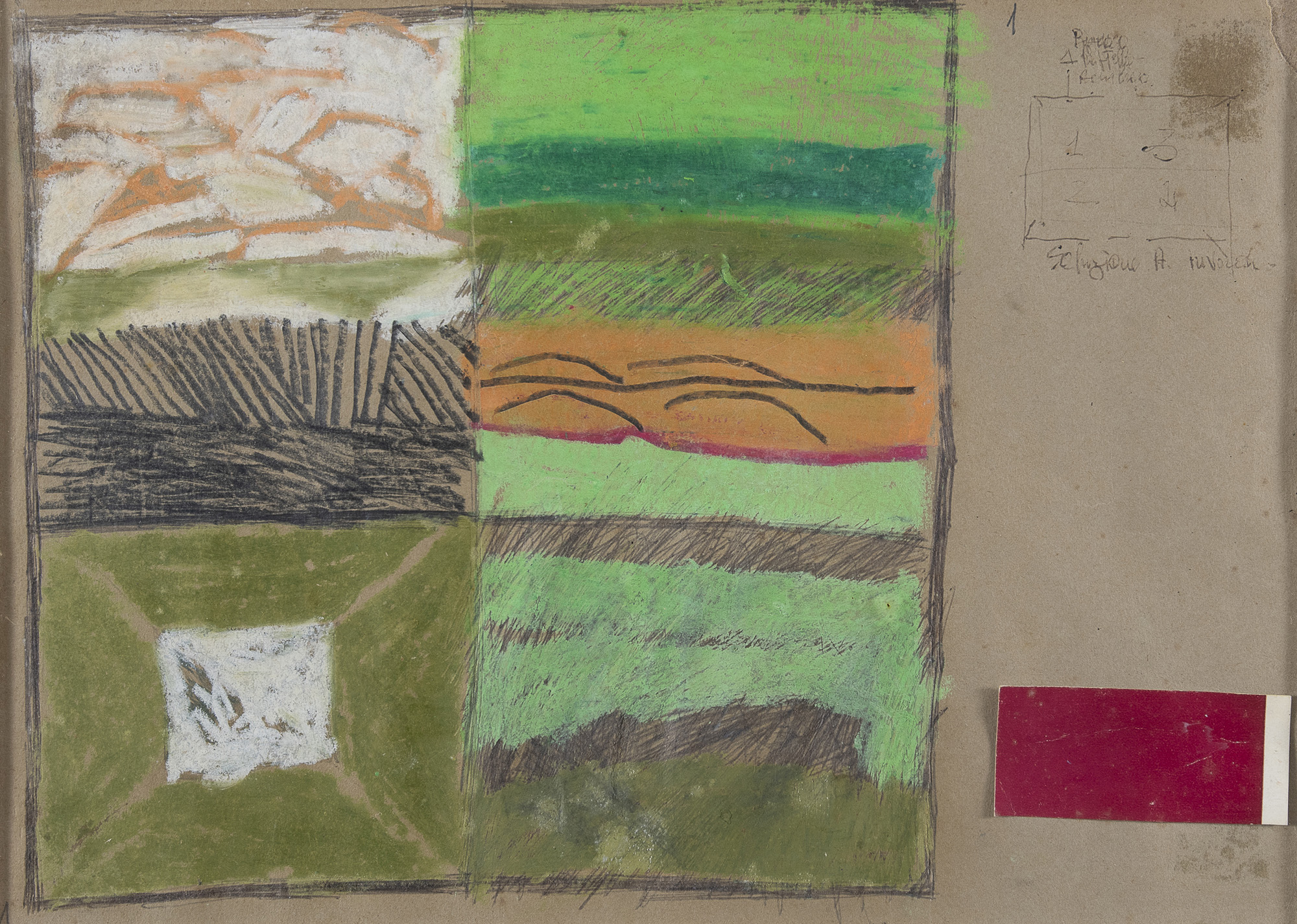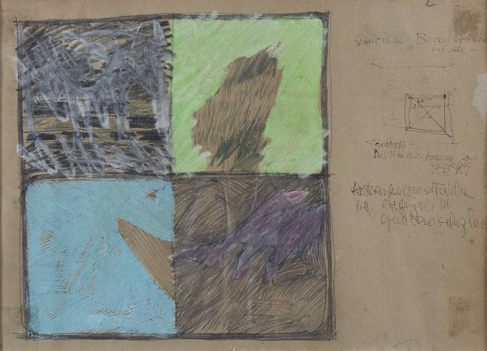 Quattro tecniche miste su carta, cm. 24 x 34, cm. 24 x 34, cm. 24 x 34 e cm. 20,5 x 25,5