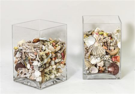 DUE VASI IN VETRO CONTENENTI COLLEZIONE DI CONCHIGLIE - SHELL COLLECTION IN...