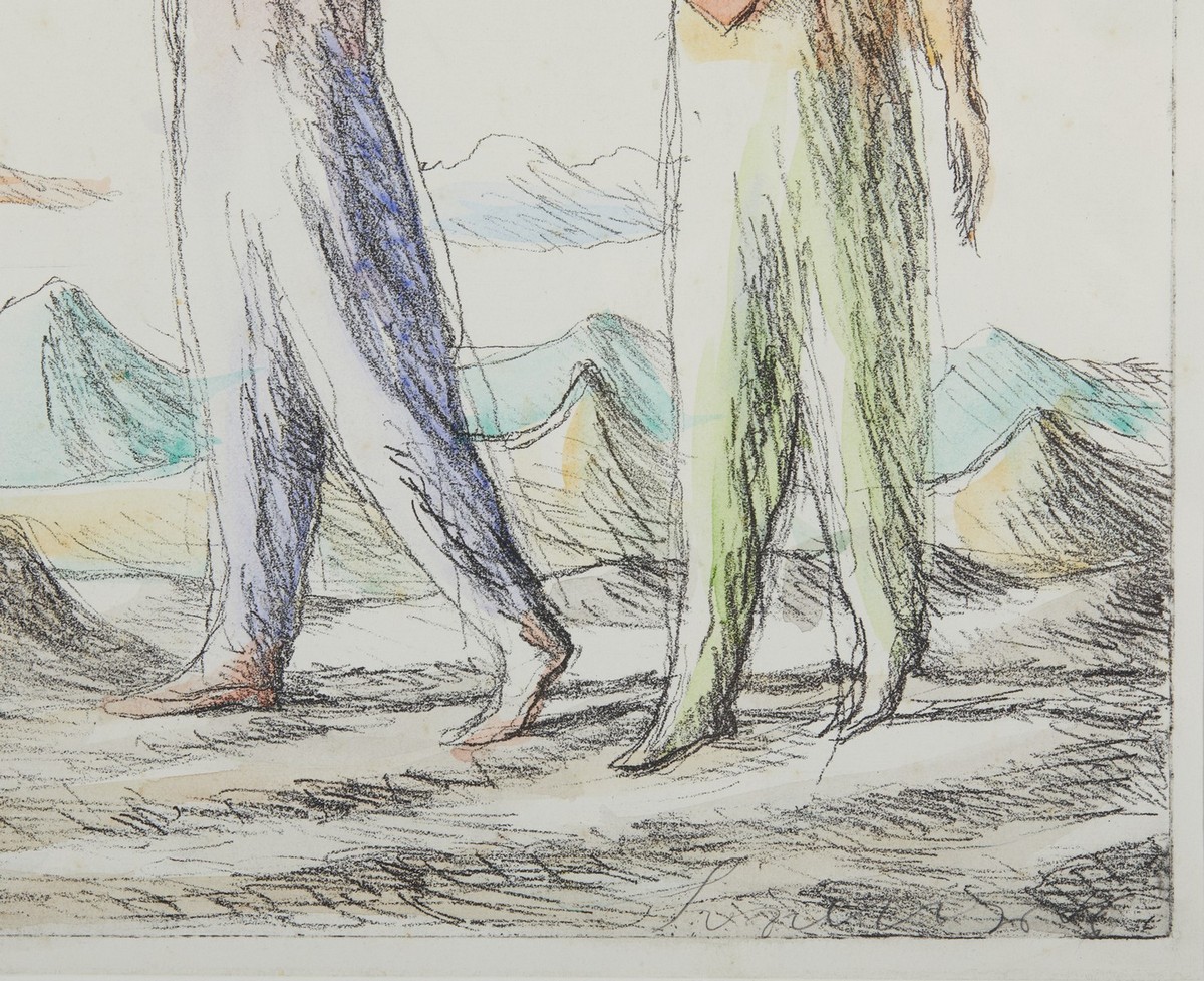BONECHI LORENZO (1955 - 1994) SAN FRANCESCO PARLA AGLI UCCELLI (PROTOTIPO), 1986. ceramolle acquarellata. Cm 35,00 x 53,00. firma e data