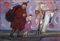 LONGARETTI TRENTO (1916 - 2017) VAMOS, 1988-1989. Olio su cartone. Cm 49,50 x 34,50. firma
