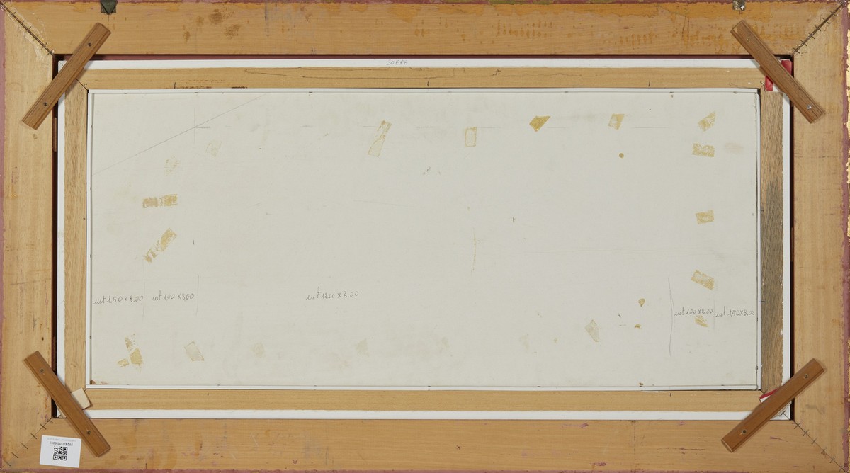 L'opera è accompagnata da autentica dell'artista su fotografia e da certificato di archiviazione di Laura Fiume. Cornice presente