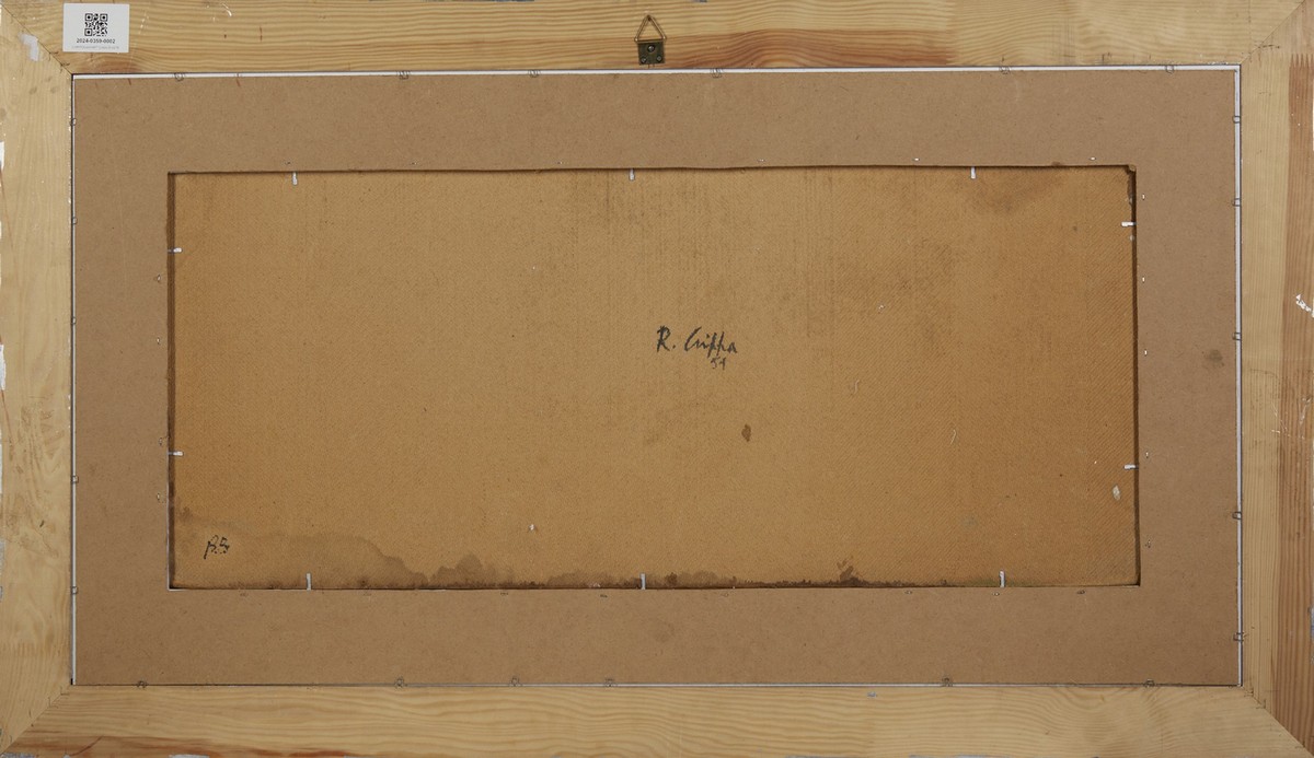 L'opera è accompagnata da certificato della Galleria Pace, Milano, a cura di Gimmi Stefanini. Cornice presente