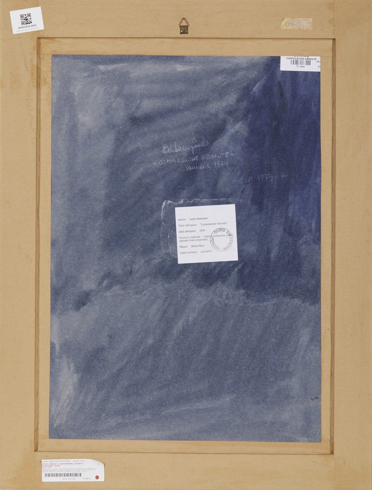 Si ringrazia l'Archivio Guido Baldessari per aver confermato la presenza dell'opera nei loro archivi. Cornice presente