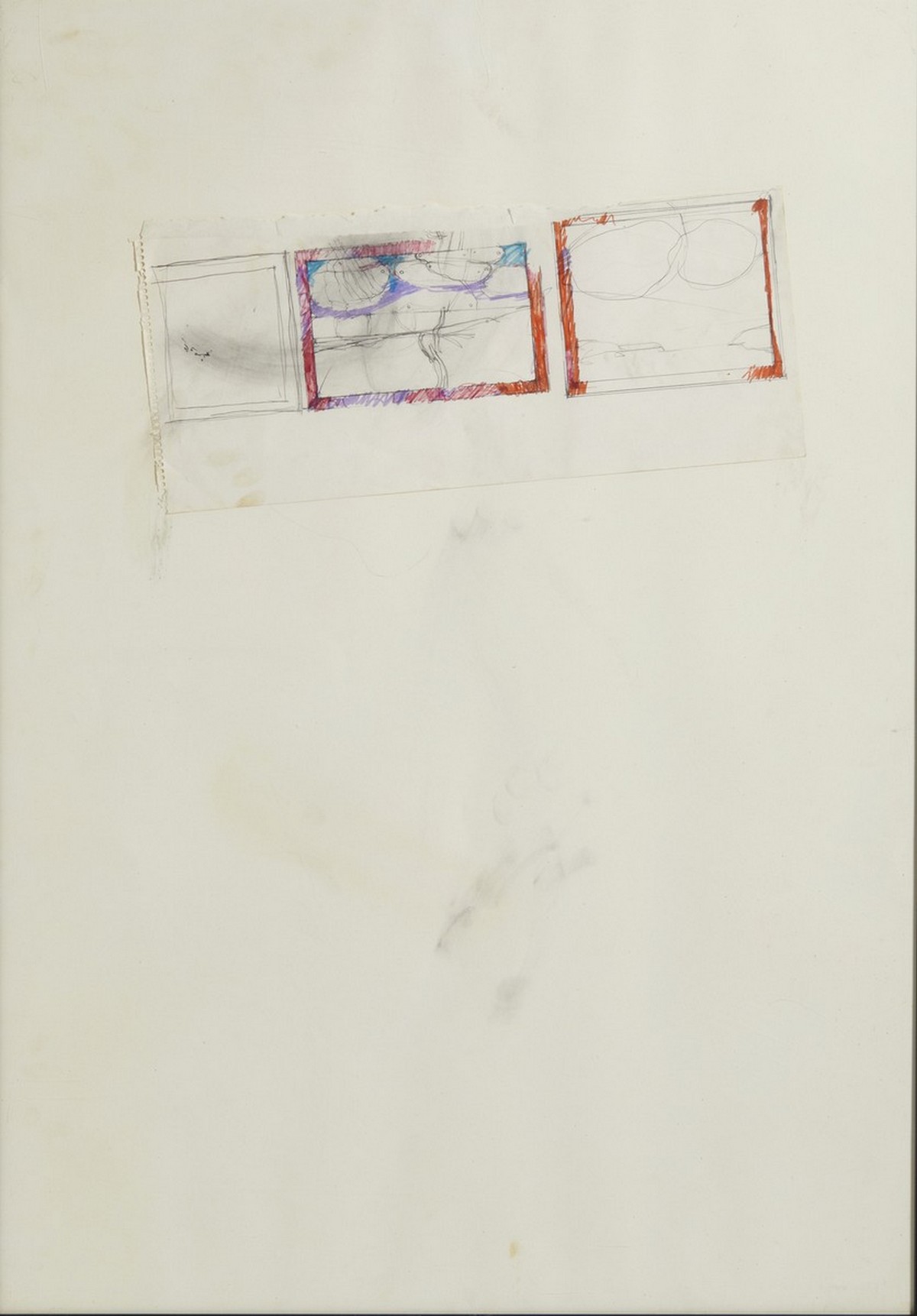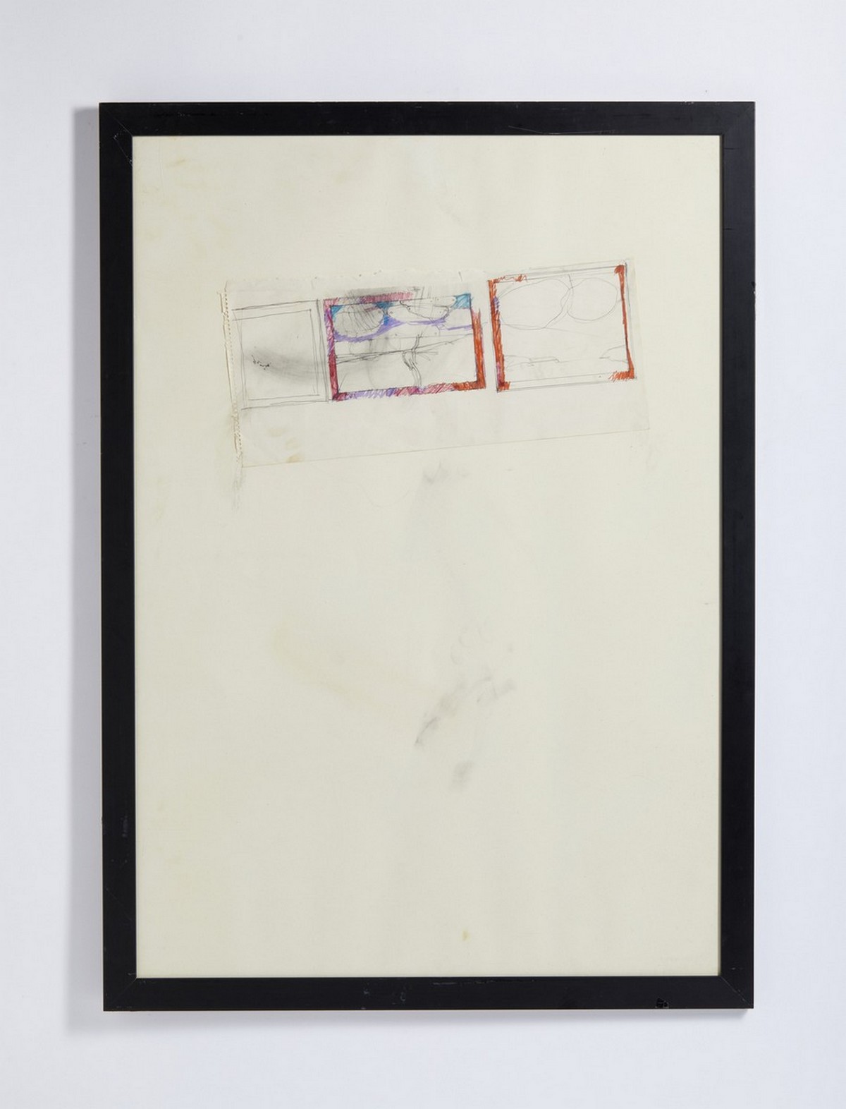 SCHIFANO MARIO (1934 - 1998) SENZA TITOLO, 1981. pennarelli, grafite e collage su carta. Cm 70,00 x 100,00. sul retro: firma e timbro Studio Oggetto, Caserta