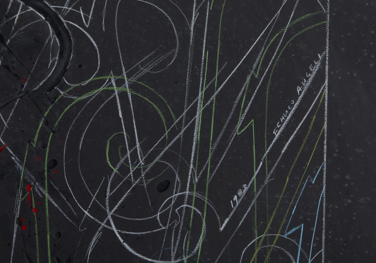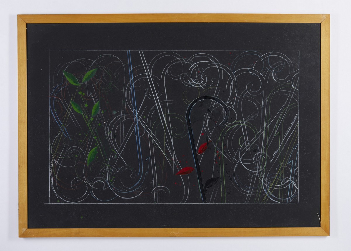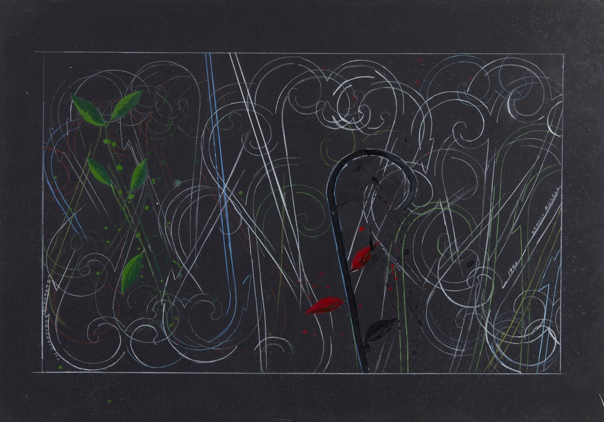 ANGELI FRANCO (1935 - 1988) IL GIARDINO INCANTATO, 1983. tecnica mista su carta. Cm 100,00 x 70,00. firma, data e titolo