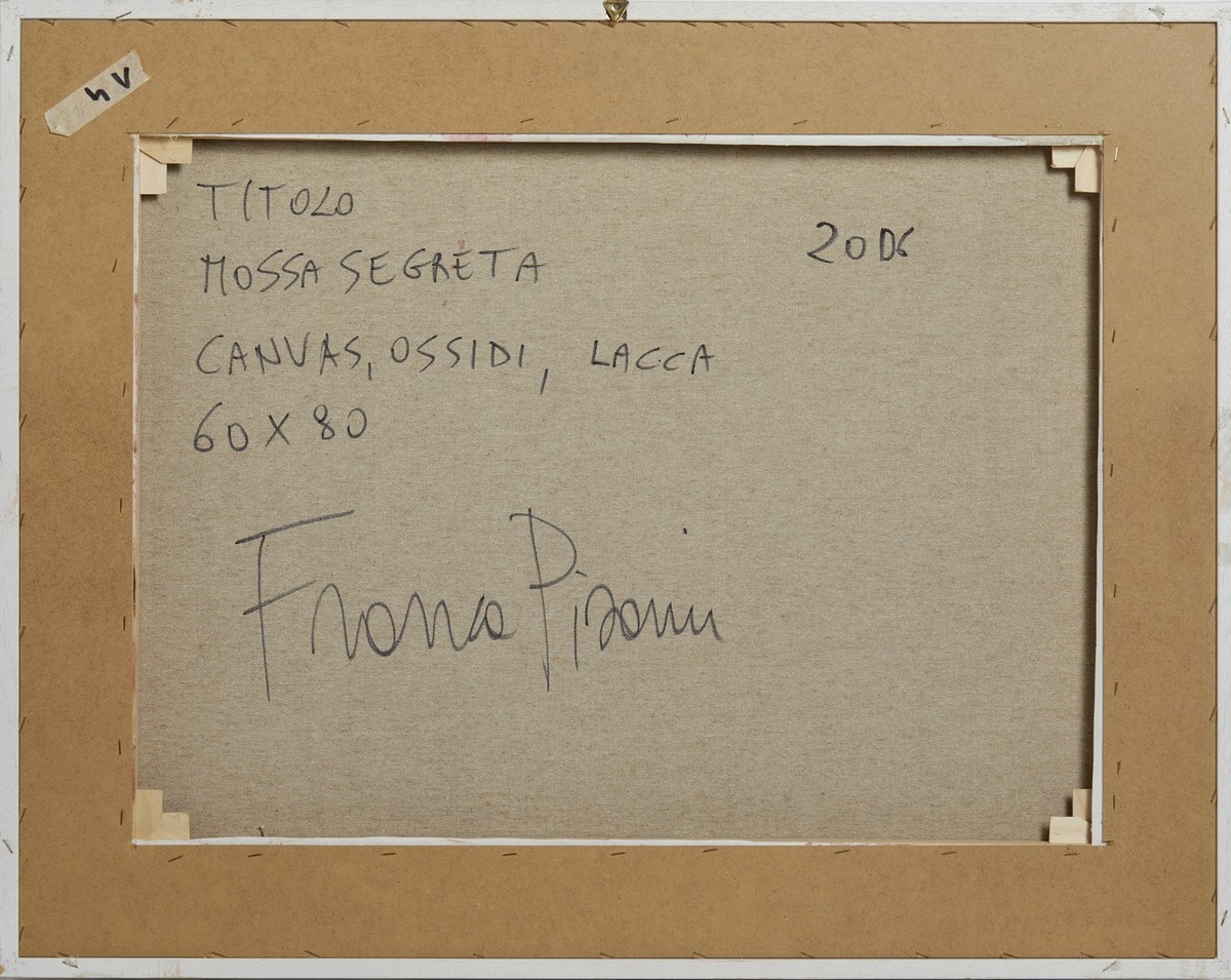 PISANI FRANCA (n. 1956) MOSSA SEGRETA, 2006. ossidi e lacca su tela. Cm 80,00 x 60,00. firma e titolo
