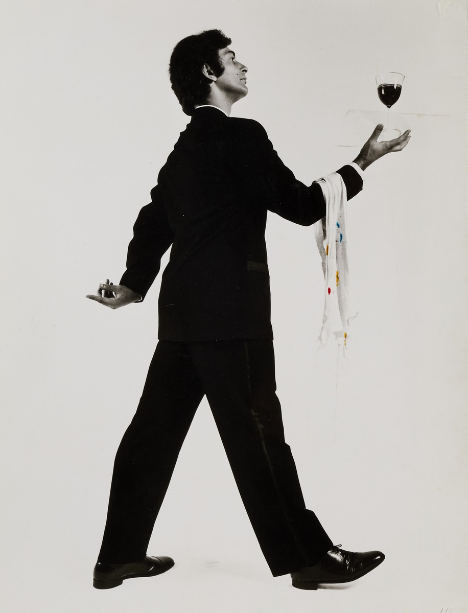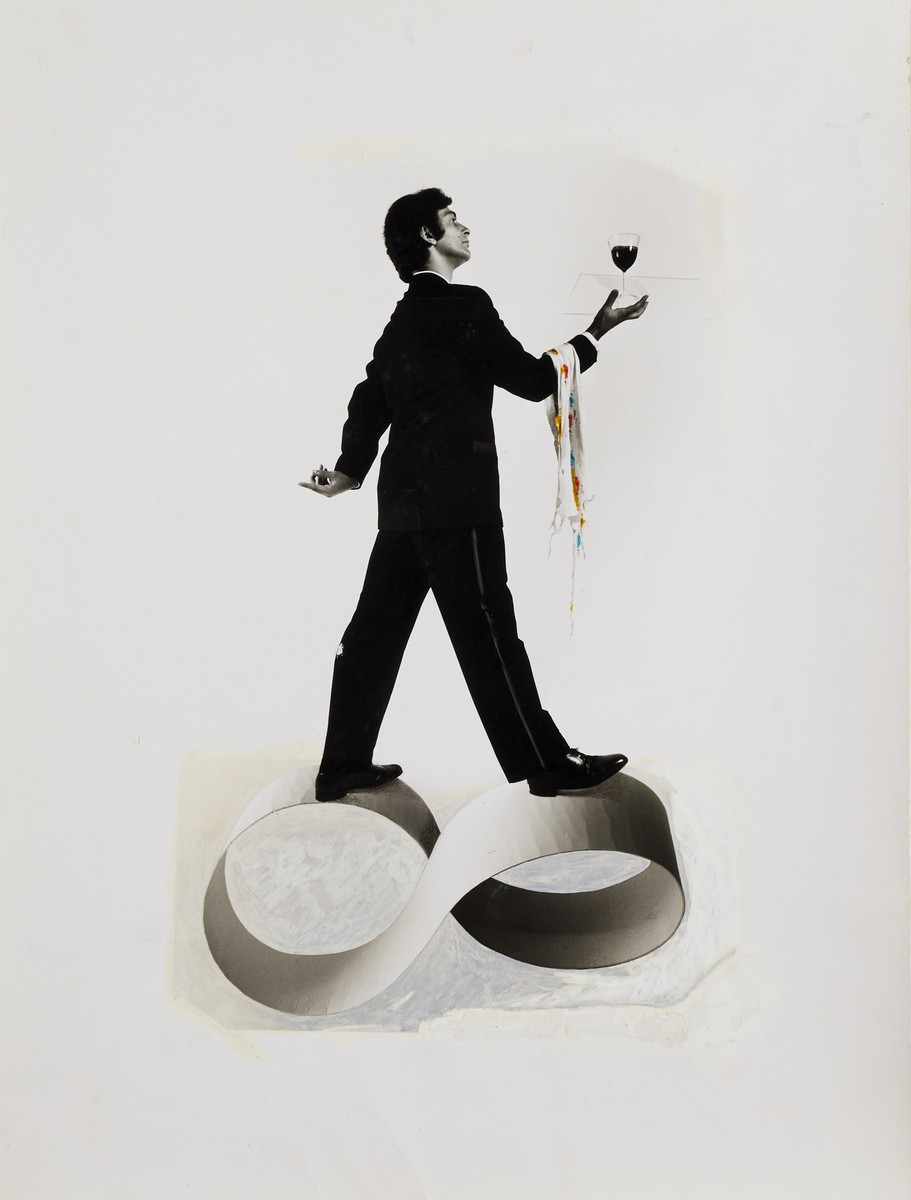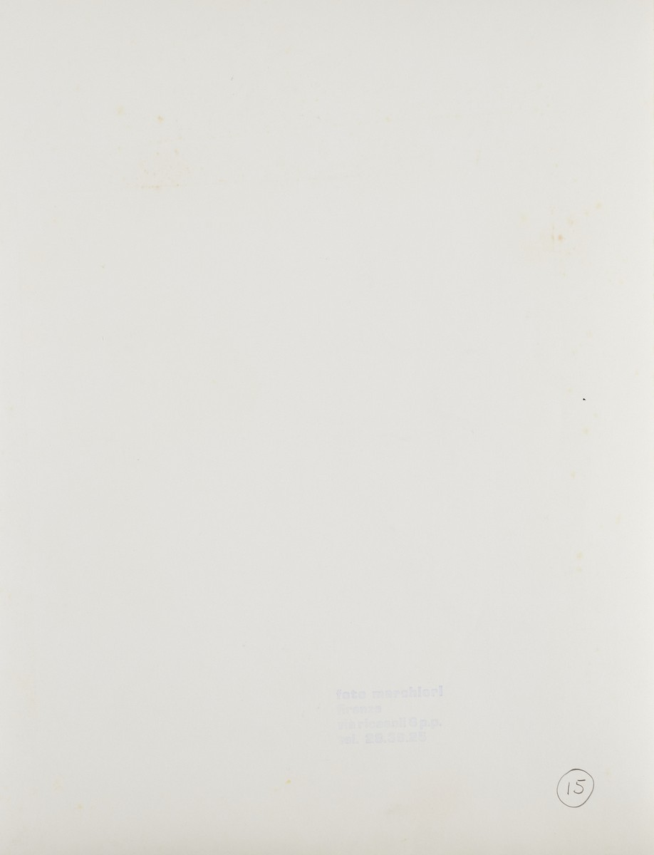 1 - fotografia avvolta da carta velina stampata con i nomi degli artisti che hanno collaborato al progetto, cm 29, 5x24, sul retro firma e timbro foto Marchiori, Firenze