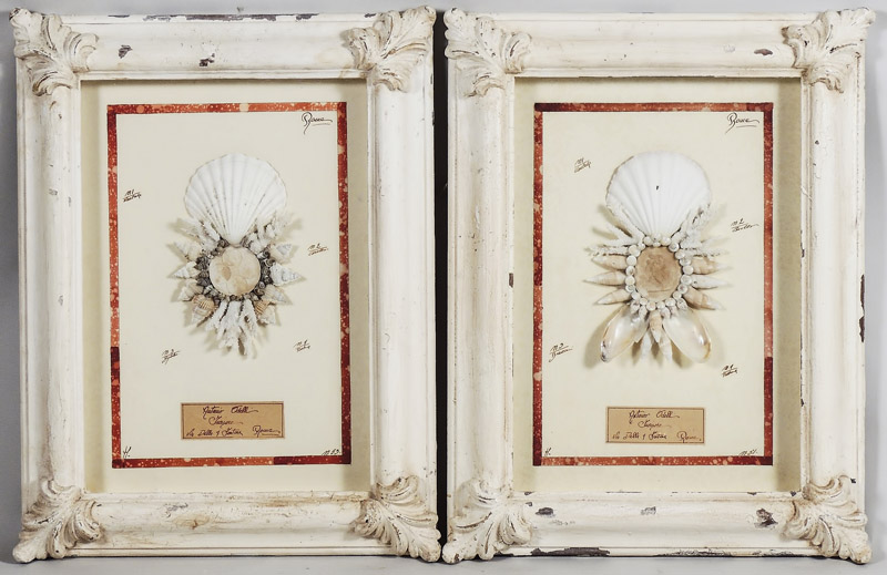 Lotto 920 | COPPIA DI CAPRICCI CON COMPOSIZIONE DI CONCHIGLIE E MEDAGLIONI IN GESSO -...