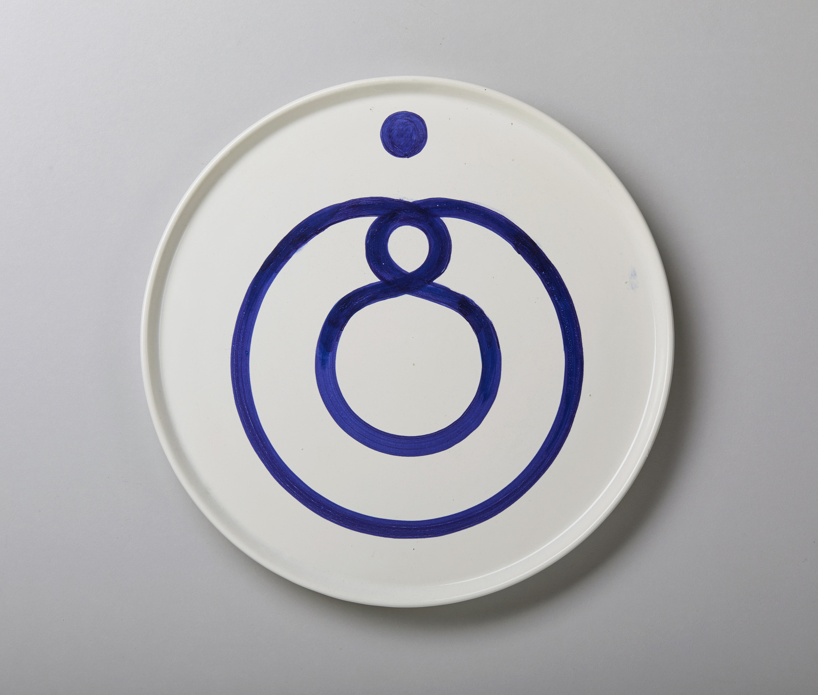 Piatto in ceramica con decorazione a smalto blu realizzato per Alitalia.