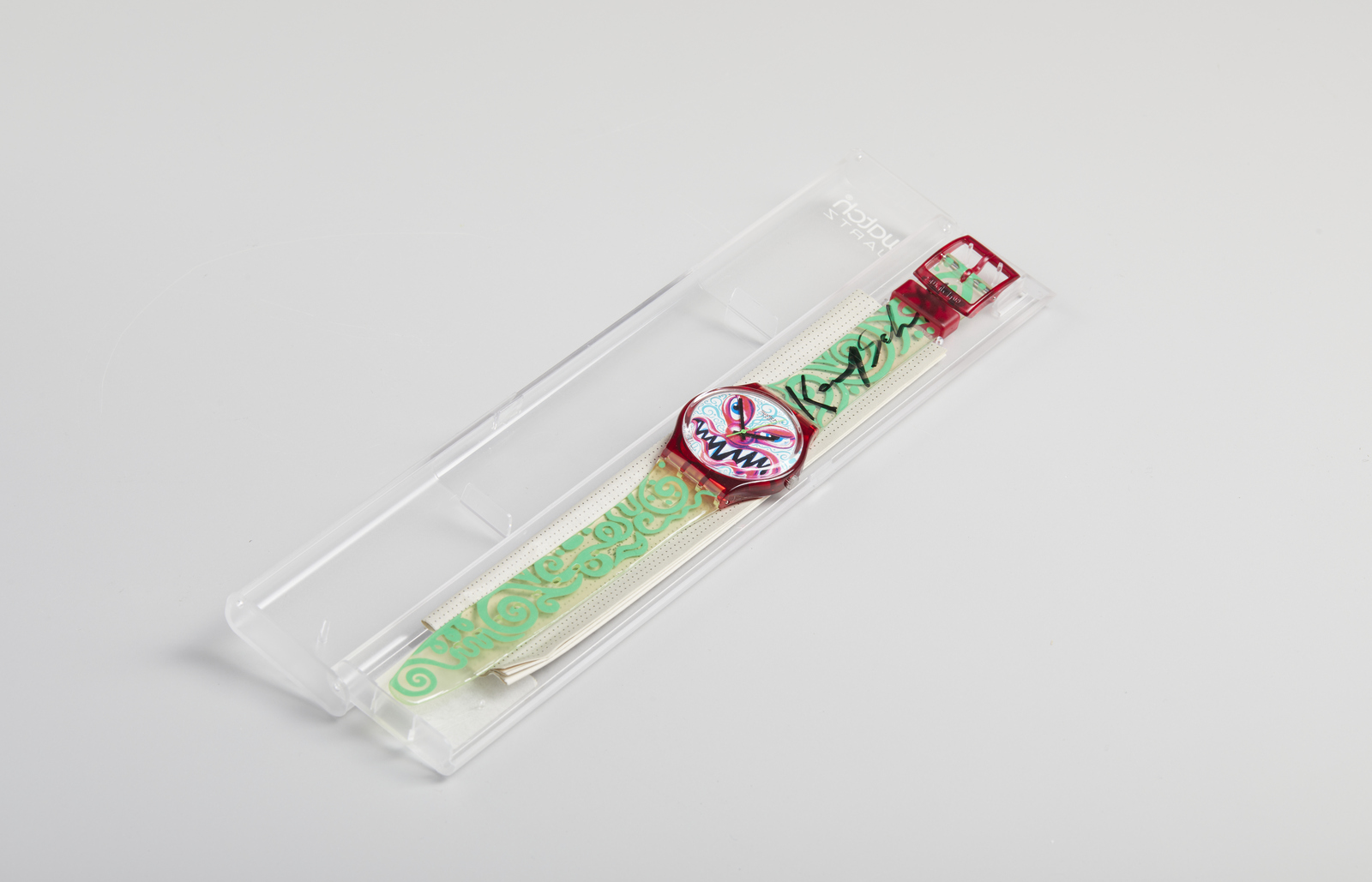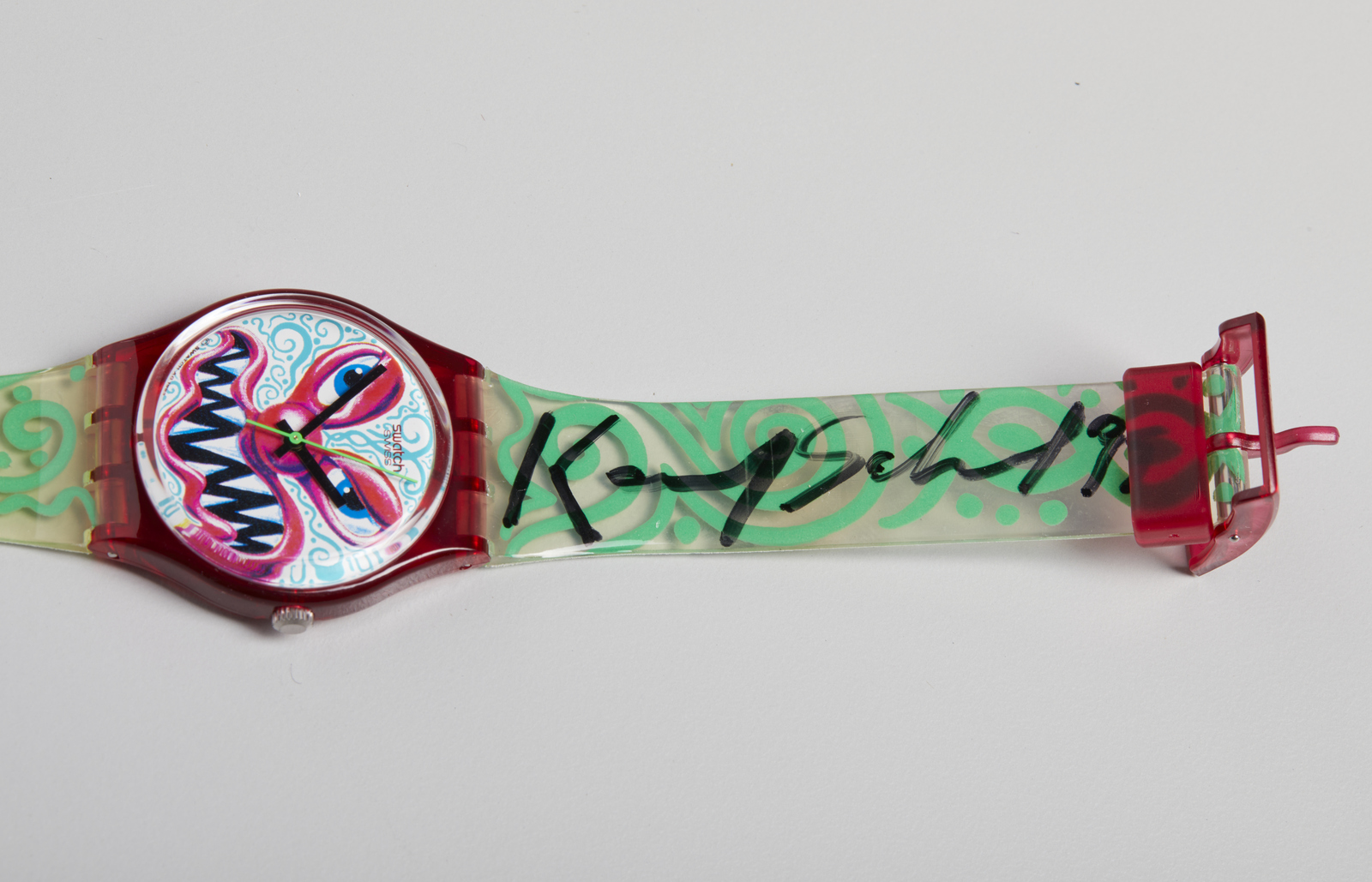 SCHARF KENNY (n. 1958) IL TEMPO DEI MOSTRI, 1994. orologio Swatch. Cm 3,00 x 22,00 x 1,00. firma a pennarello