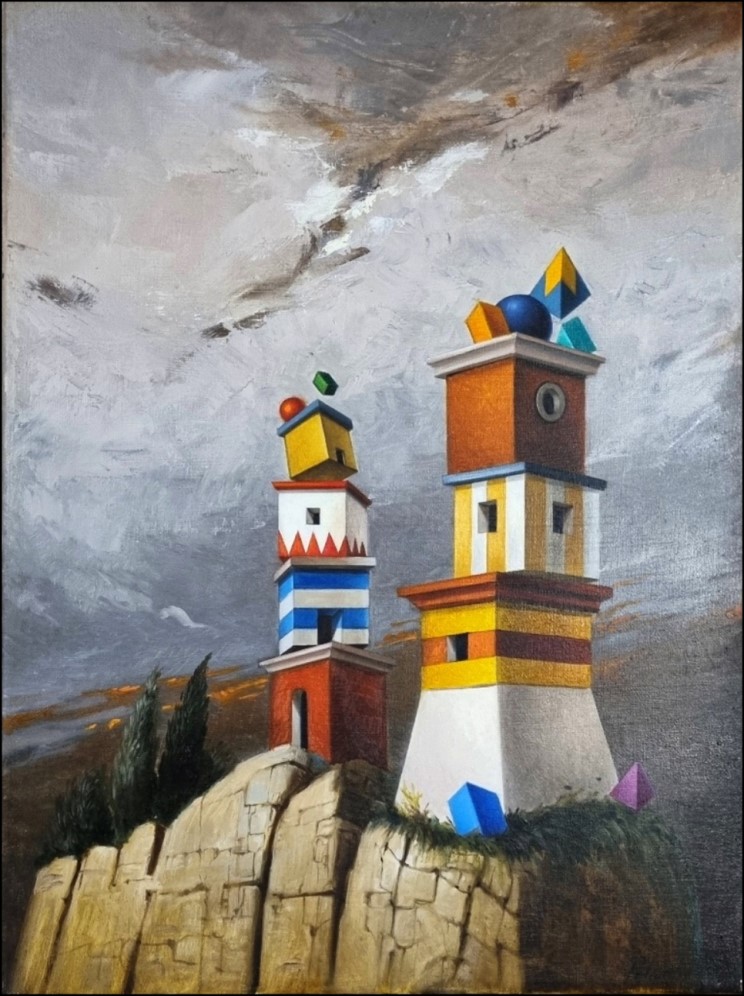 PALUMBO CIRO Zurigo 1965 "Grattacieli" Olio su tela cm 30x40 del 2012. Firmato sul fronte in basso a destra. Sul retro firma, titolo e timbro dello Studio d'Arte Palumbo, con numero d'archivio e descrizione. Certificato di autenticità a cura dell'Artista.