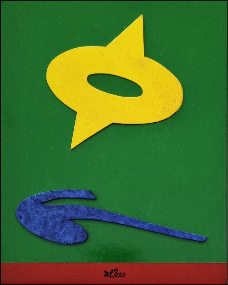 DEL PEZZO LUCIO Napoli 1933 - Milano 2020 "L'aquilone" Collage, smalto, colore e acrilico su legno, cm 20x25. Firmato sul fronte in basso al centro. Sul retro firma, titolo, tecnica e misure. Certificato a cura della Galleria Elite Trading. Archivio su foto a cura dell'Archivio Lucio Del Pezzo.