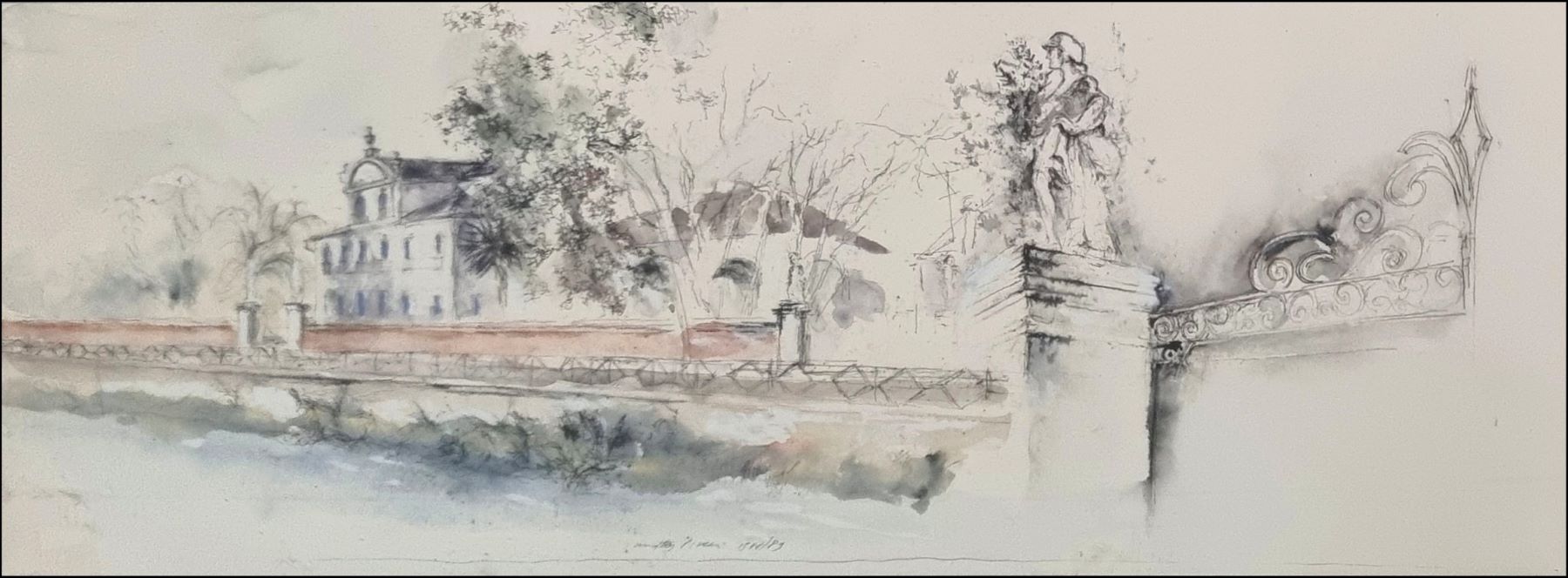 PIACESI WALTER Ascoli Piceno 1929 - Fermignano 2022 "Villa Sheriman - Widmann - Foscari" Inchiostro su carta cm 73x27 del 1988/89. Firmata e datata sul fronte in basso a destra. Sul retro data, titolo, tecnica e misure.