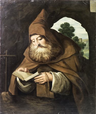 EREMITA IN PREGHIERA - PRAYING HERMIT XIX secolo - 19th century olio su tela - oil on canvas cm 101x84