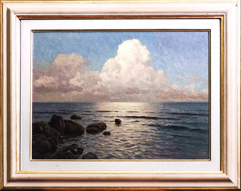ALBERTO ZARDO (1876- 1959) Marina - Seascape olio su cartone - oil on cardboard, firmato, in cornice cm 30x40