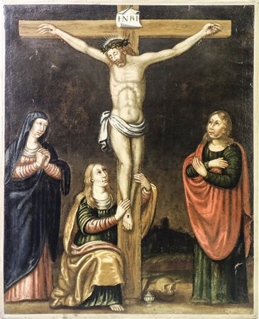SCUOLA TEDESCA DEL XIX SECOLO - GERMAN SCHOOL OF 19TH CENTURY Crocifissione con le Pie Donne - Crucifixion with Pious Women olio su tela - oil on canvas, difetti cm 113x90