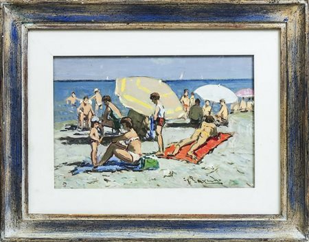 GIORGIO LUXARDO Bagnanti - Bathers olio su tavoletta - oil on panel, firmato, in cornice cm 20x30