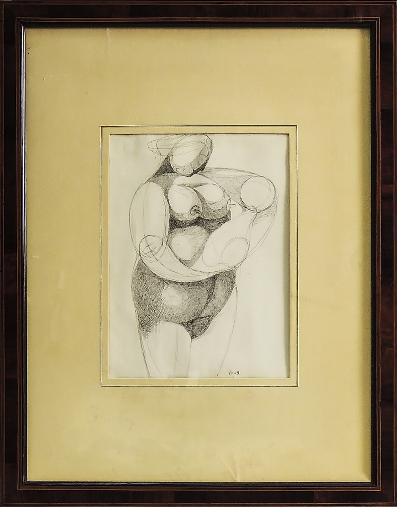 VENTURINO VENTURI (1918- 2002) Maternità 1949 - Maternity china su carta - indian ink on paper, siglato e datato 49, in cornice cm 33x24 Provenienza: Galleria Michelucci, Firenze