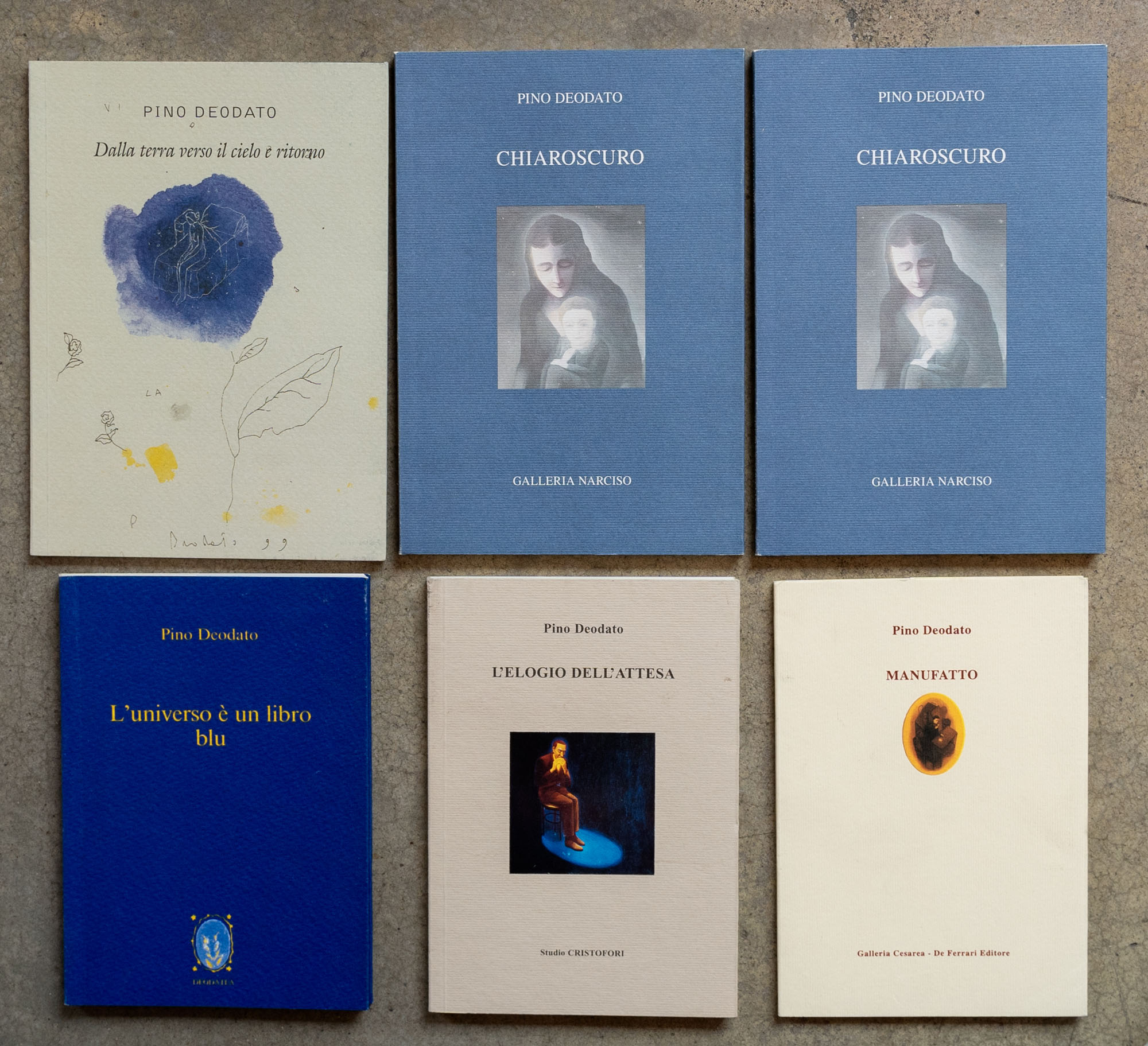 PINO DEODATO(1950)Lotto di sei cataloghiAnni diversiCataloghi monografici illustratiTre cataloghi misurano: 15 x 10,5 cmTre cataloghi misurano: 17 x 12 cmDifetti