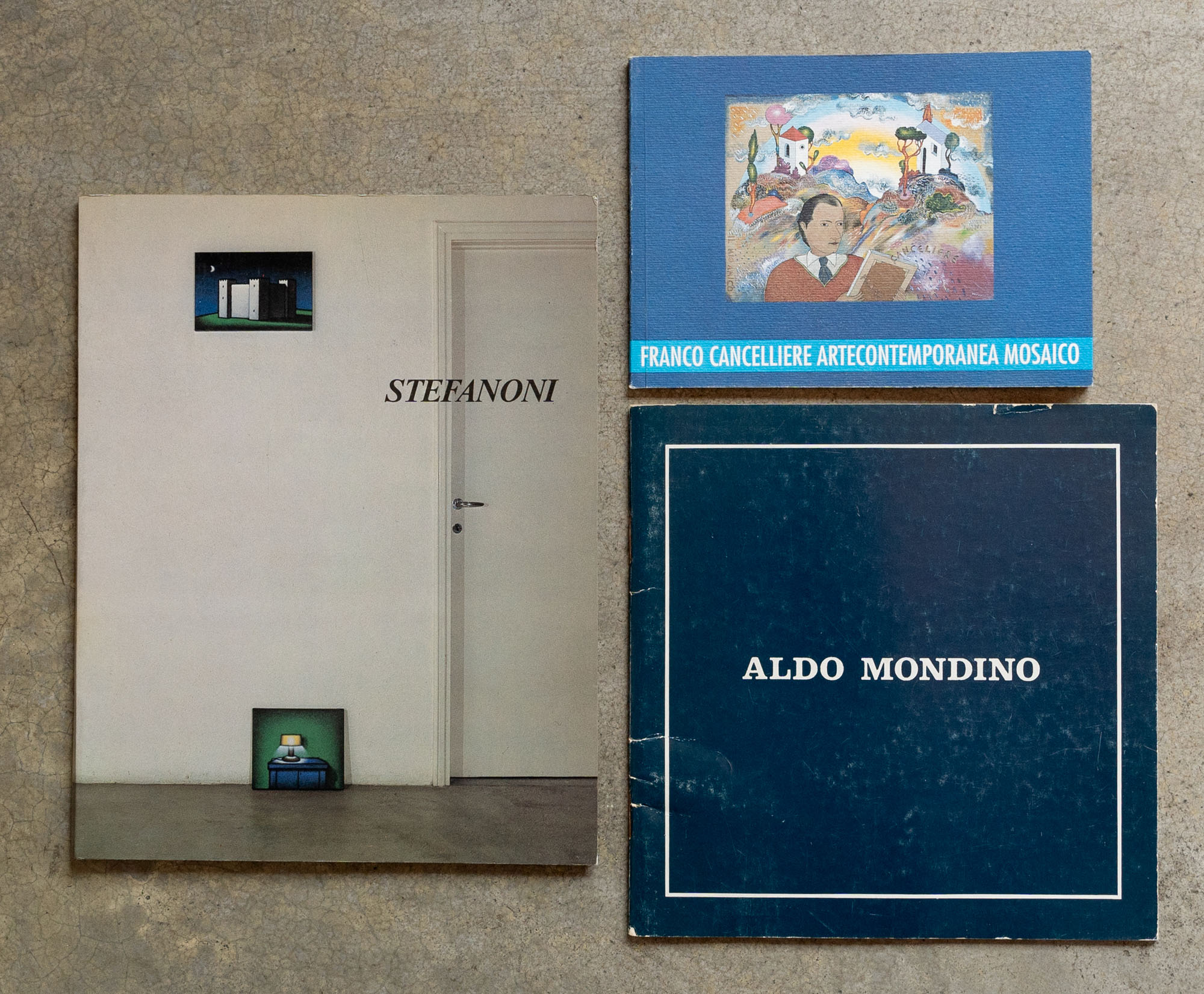 LOTTO MULTIPLOLotto di tre cataloghiStefanoni - Opere 1965-19861986Catalogo monografico illustrato realizzato su una tiratura complessiva di 3000 esemplari21,5 x 17 cmEdizioni della Galleria SenoPagine 62 Senza difetti Aldo Mondino1976Catalogo illustrato edito in occasione della mostra tenutasi presso la galleria Bluart, Varese (4 - 31 dicembre 1976)17 x 17 cmEdizione della galleriaSenza numero di pagineDifettiFranco Cancelliere Artecontemporanea Mosaico1997Catalogo illustrato edito in occasione della mostra tenutasi presso Arte Fiera, Bologna (23 - 27 gennaio 1997)11 x 14,5 cmEdizione della galleriaSenza numero di pagineSenza difetti