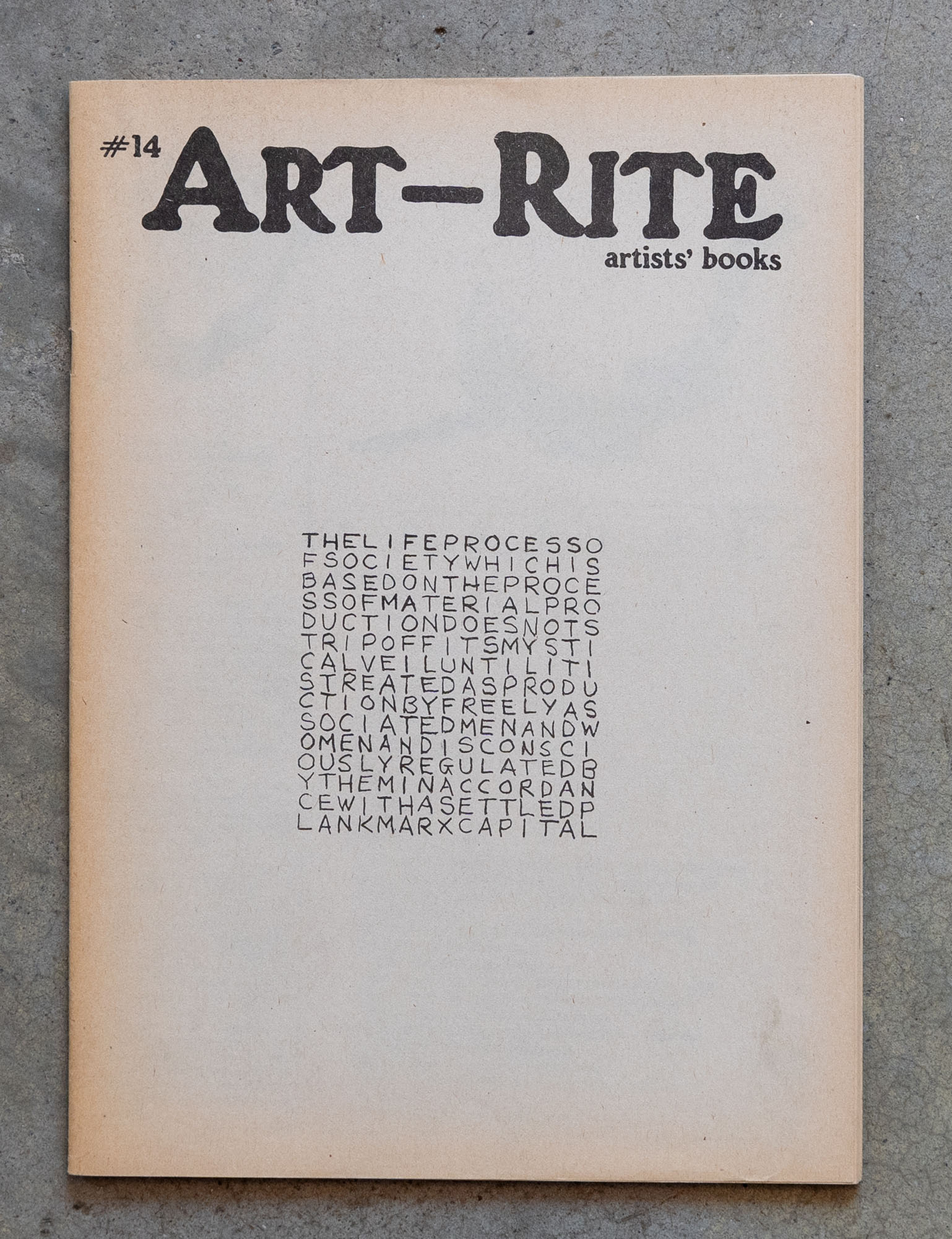 AUTORI VARIArt-Rite n. 141976-1977Rivista in collaborazione con Carl Andre26,5 x 19 cmPagine 77Difetti