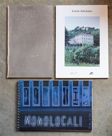 LOTTO MULTIPLOLotto di tre pubblicazioniUOVO. Rivisitina snob?, /3Rivista24 x 15 cmPagine 103DifettiMonolocali1998Catalogo illustrato edito in occasione della mostra tenutasi presso la Fondazione Bevilacqua La Masa, Venezia (28 novembre - 14 dicembre 1998)16 x 24,5 cmSenza numero di pagine DifettiLocus Amoenus1997Catalogo illustrato edito in occasione della mostra tenutasi presso Palazzo Canalis, Cumiana (8 giugno - 13 luglio 1997)24 x 17 cmEdizione Associazione Culturale, Galleria In ArcoPagine 47Difetti