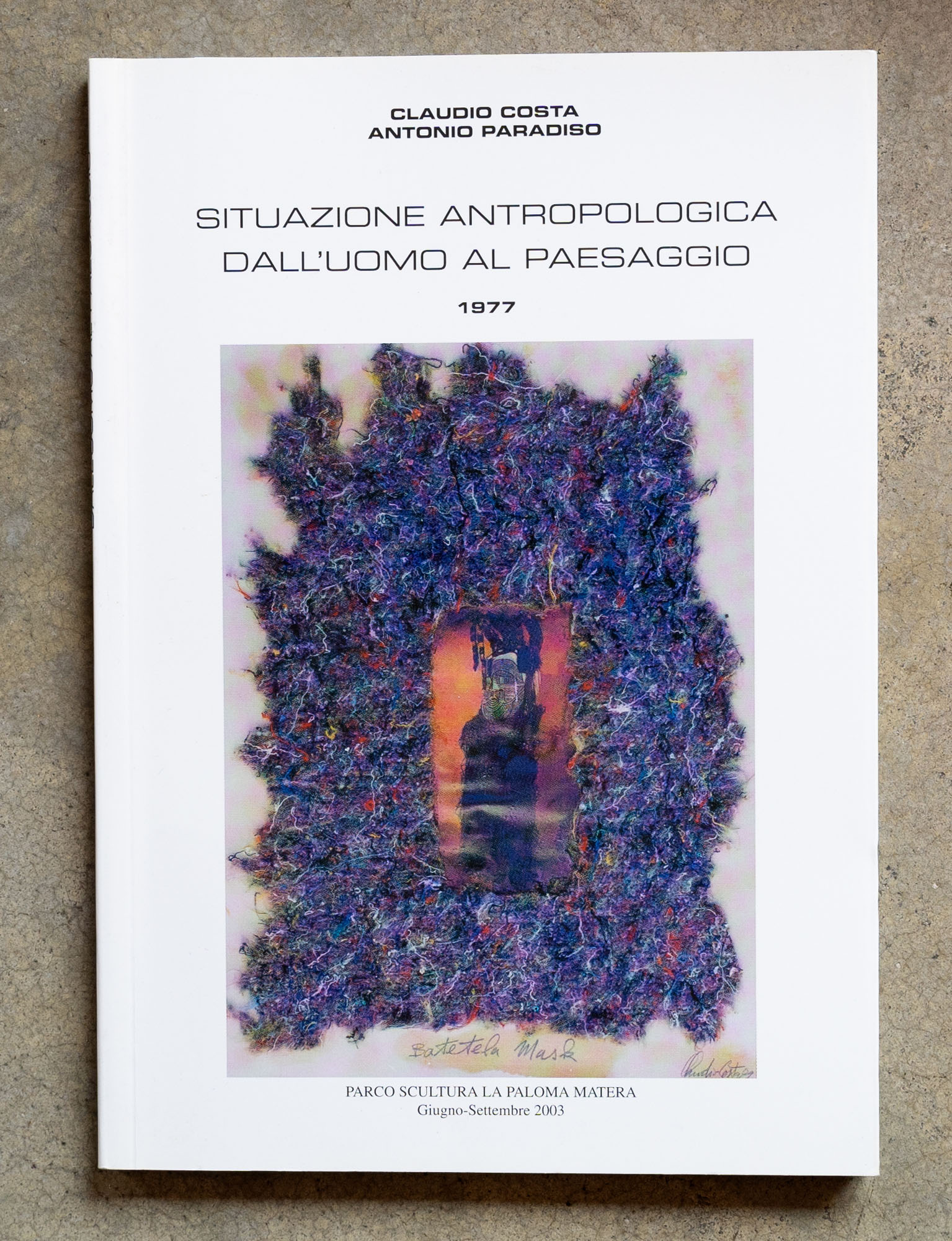 LOTTO MULTIPLOLotto di due cataloghiAntonio Paradiso1994Catalogo monografico illustrato edito in occasione delle mostre tenutesi presso la Fondazione Mudima, Milano (maggio 1994) e la Galleria Civica, Portofino (giugno 1994)26,5 x 23 cmEdizione MudimaPagine 82DifettiSituazione antropologica dell'uomo al paesaggio 19772003Catalogo illustrato edito in occasione della mostra tenutasi presso il parco sculturale la Palomba, Matera (giugno - settembre 2003)23 x 16 cmSignum Edizioni d'ArtePagine 136Senza difetti