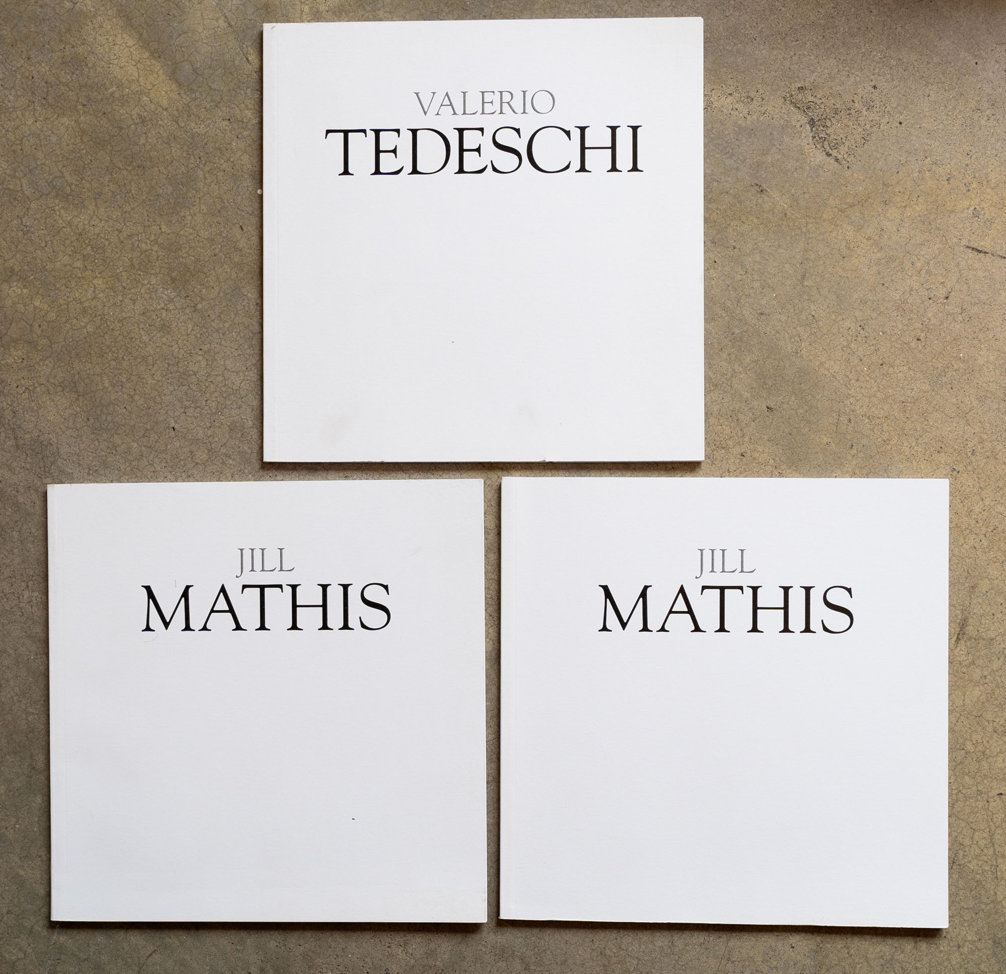 LOTTO MULTIPLOLotto di tre cataloghi2016Cataloghi monografici illustrati editi in occasione delle mostre di Jill Mathis e Valerio Tedeschi tenutesi presso Palazzo Parasi, Cannobio (21 maggio - 3 luglio 2016)21 x 21 cmEdizione della galleriaSenza numero di pagineDifetti