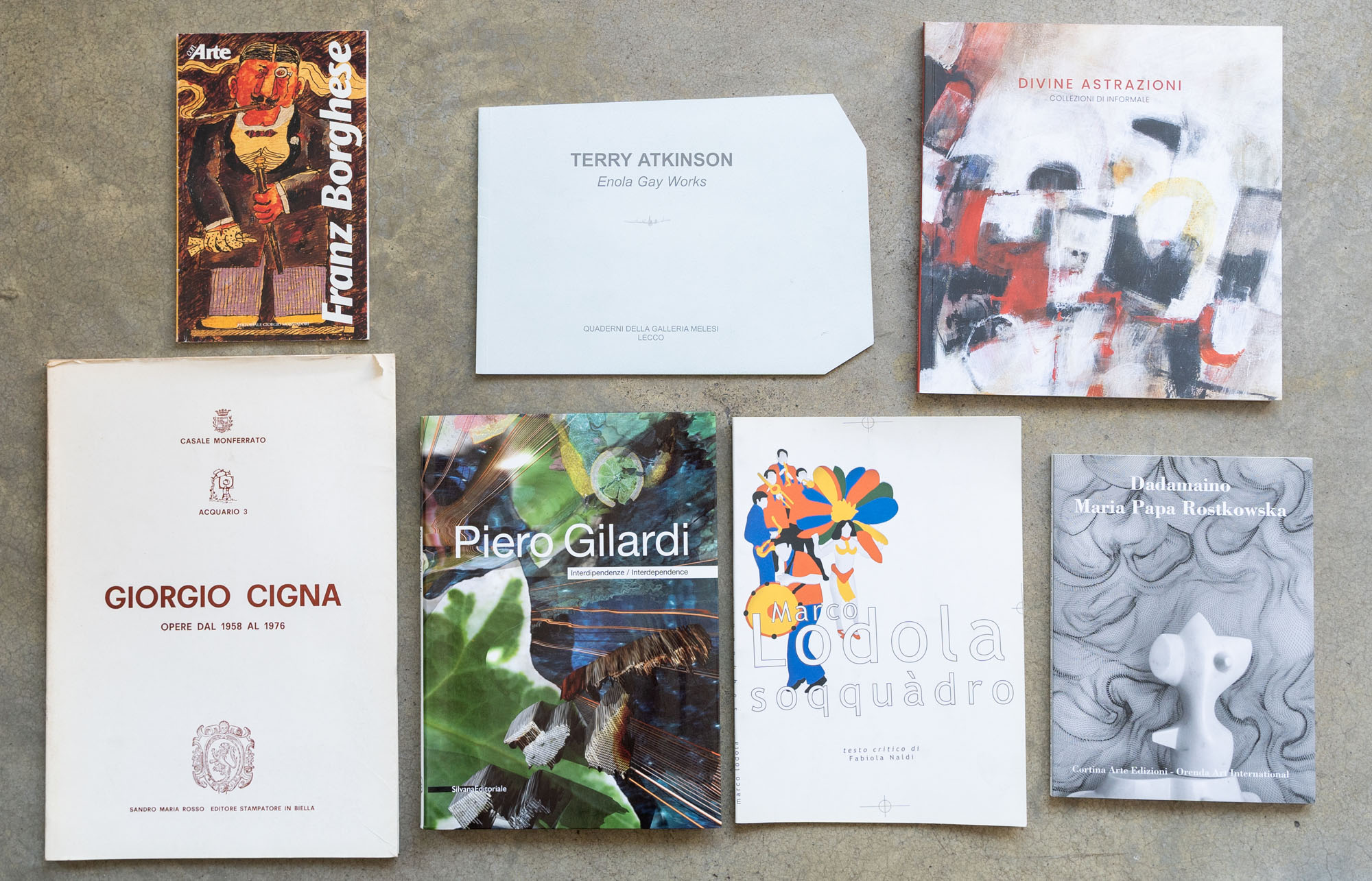 LOTTO MULTIPLOLotto di sette cataloghiPiero Gilardi - Interdipendenze 2006Catalogo monografico illustrato24,5 x 17,5 cmSilvana EditorialePagine 128Senza difettiMarco Lodola - Soqquadro2001Catalogo monografico illustrato24 x 17 cmEdizione Galerie Des ArcsSenza numero di pagineSenza difettiFranz Borghese - I dipinti su faesite2002Catalogo monografico illustrato19 x 11,5 cmEditoriale Giorgio MondadoriPafine 72Senza difettiDadamaino e Maria Papa Rostkowska - Pureté de la ligne2015Catalogo illustrato20 x 15 cmEdizione Cortina Artepagine 80Senza difettiTerry Atkinson - Enola Gay Works2006Catalogo monografico illustrato edito in occasione della mostra tenutasi presso la Galleria Melesi, Lecco ( 7 ottobre - 24 dicembre 2006)16,5 x 24 cmEdizione della galleriaSenza numero di pagineSenza difettiDivine astrazioni. Collezioni di informale2022Catalogo illustrato22,5 x 21,5 cmPagine 88Senza difettiGiorgio Cigna - Opere dal 1958 al 19761977Catalogo monografico illustrato30 x 21 cmSandro Maria Rosso EditoreSenza numero di pagineSenza difetti
