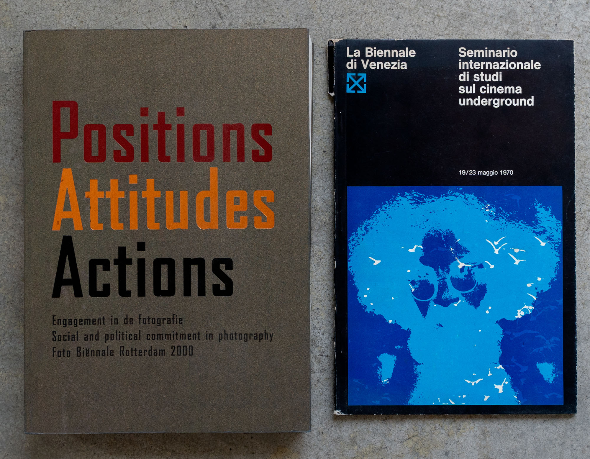 LOTTO MULTIPLOLotto di due cataloghiPositions, Attitudes, Actions. Engagement in de fotografie. Social and political commitment in photography2000Catalogo illustrato edito in occasione della Foto Biennale Rotterdam, Rotterdam (2000)24 x 17 cmEdizione Nederlands Foto InstituutPagine 391DifettiSeminario internazionale di studi sul cinema underground1970Catalogo illustrato23,5 x 15 cmEdizione La Biennale di VeneziaSenza numero di pagineDifetti
