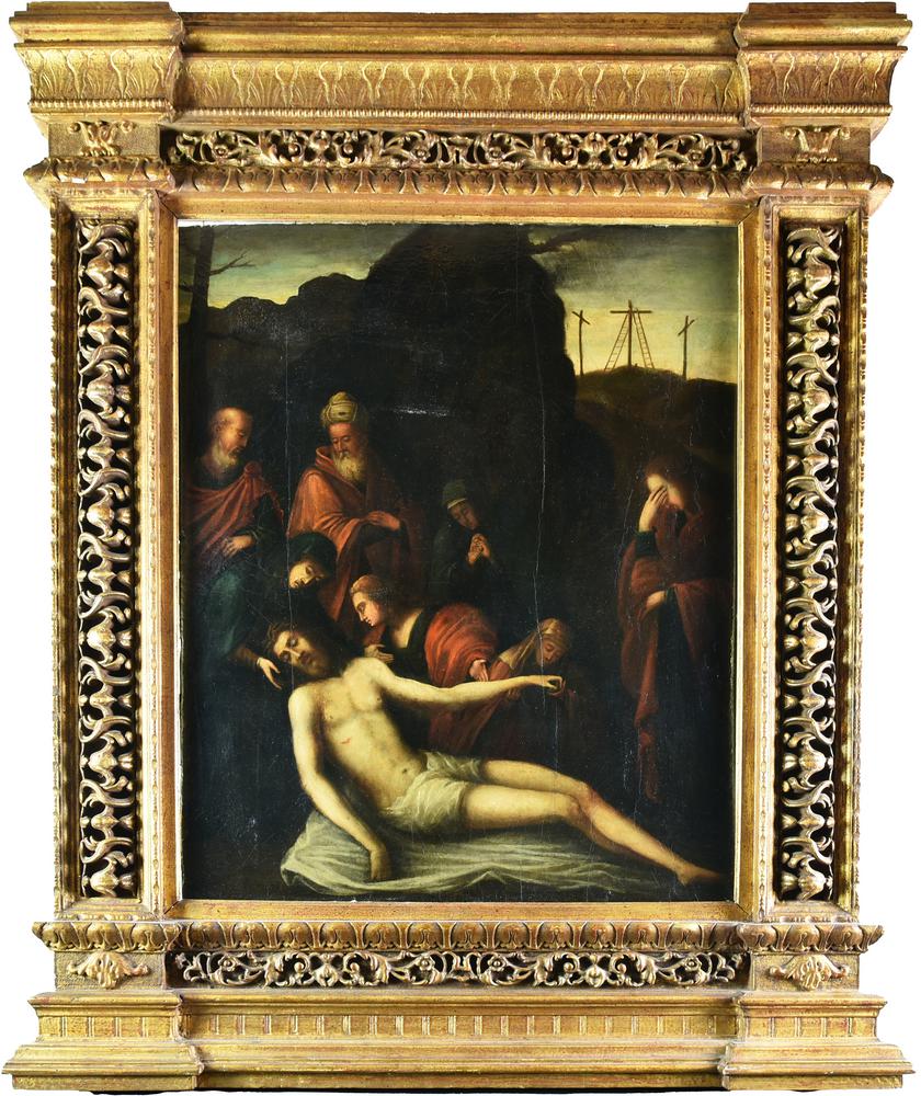Scuola italiana della fine del XVI secolo COMPIANTO SU CRISTO MORTO olio su...
