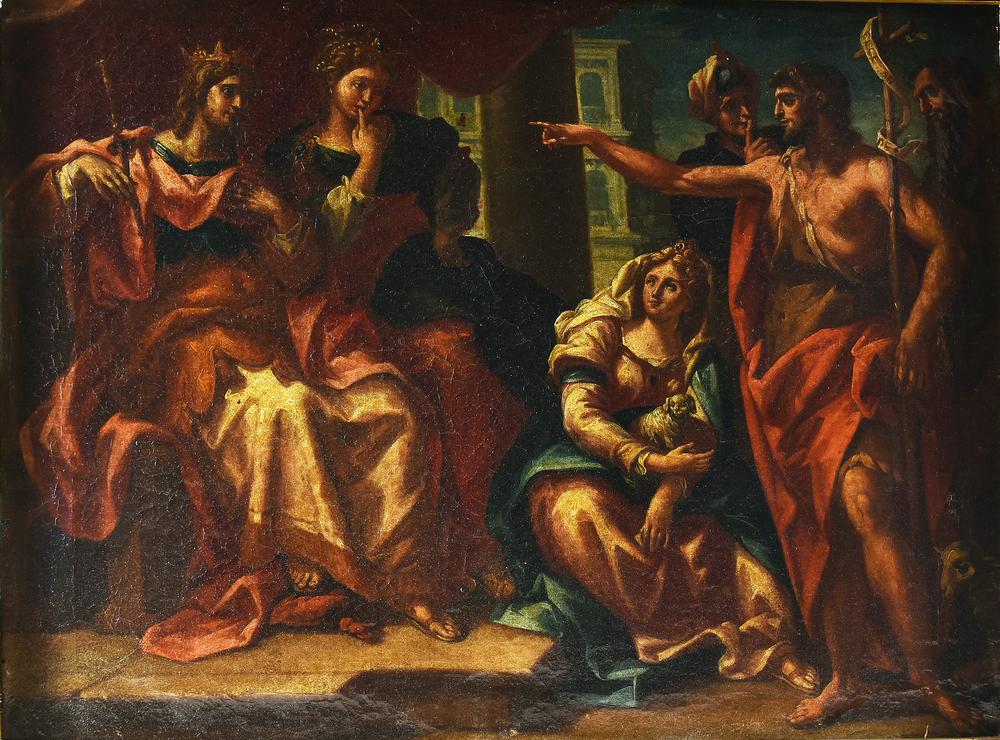Scuola del XVIII secolo SCENA BIBLICA olio su tela, cm 39x49