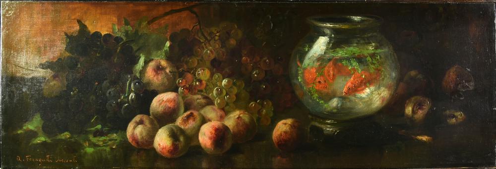 Adolfo Feragutti Visconti COPPIA DI NATURE MORTE olio su tela, cm 30x91...