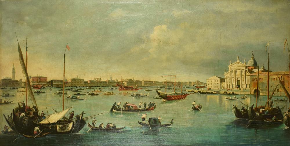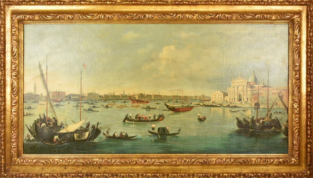 Scuola del XIX secolo VENEZIA CANAL GRANDE olio su tela, cm 60x120