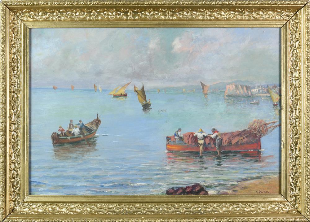 Attilio Pratella MARINA olio su cartone, cm 38,5x58,5 firma