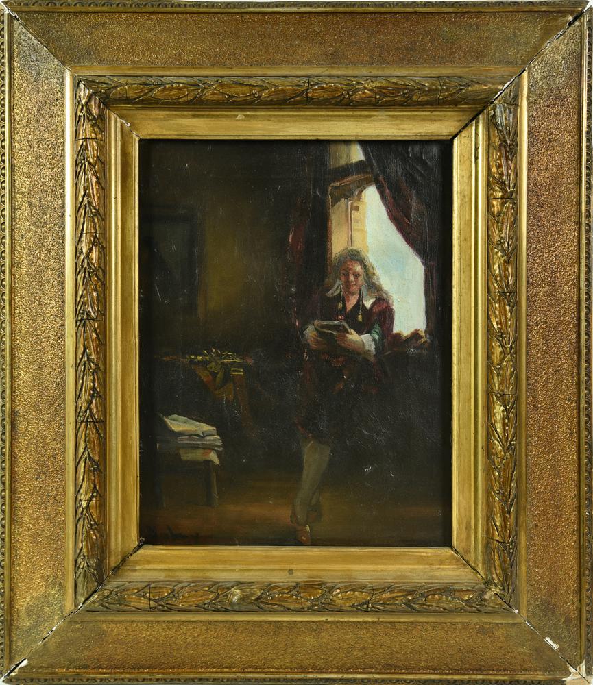Scuola del XIX secolo DONNA CHE LEGGE olio su tela, cm 34x29 indistintamente...
