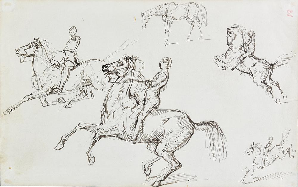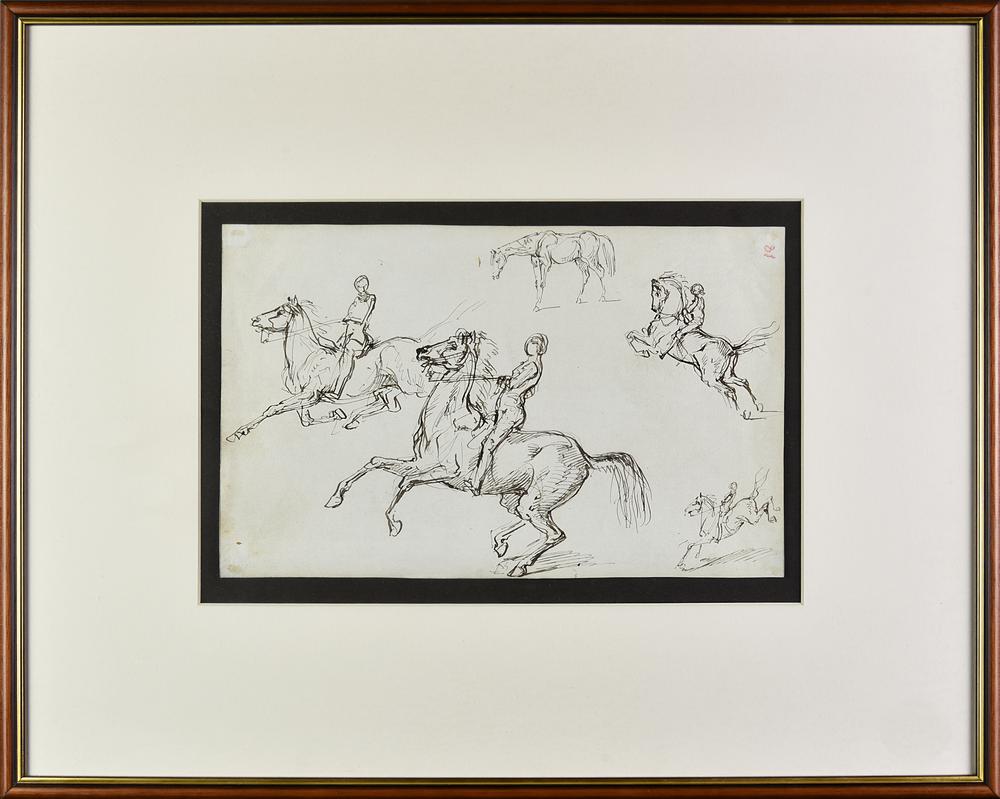 Lotto 100 | Emilio Lapi CAVALIERI china su carta, cm 17,6x27,8