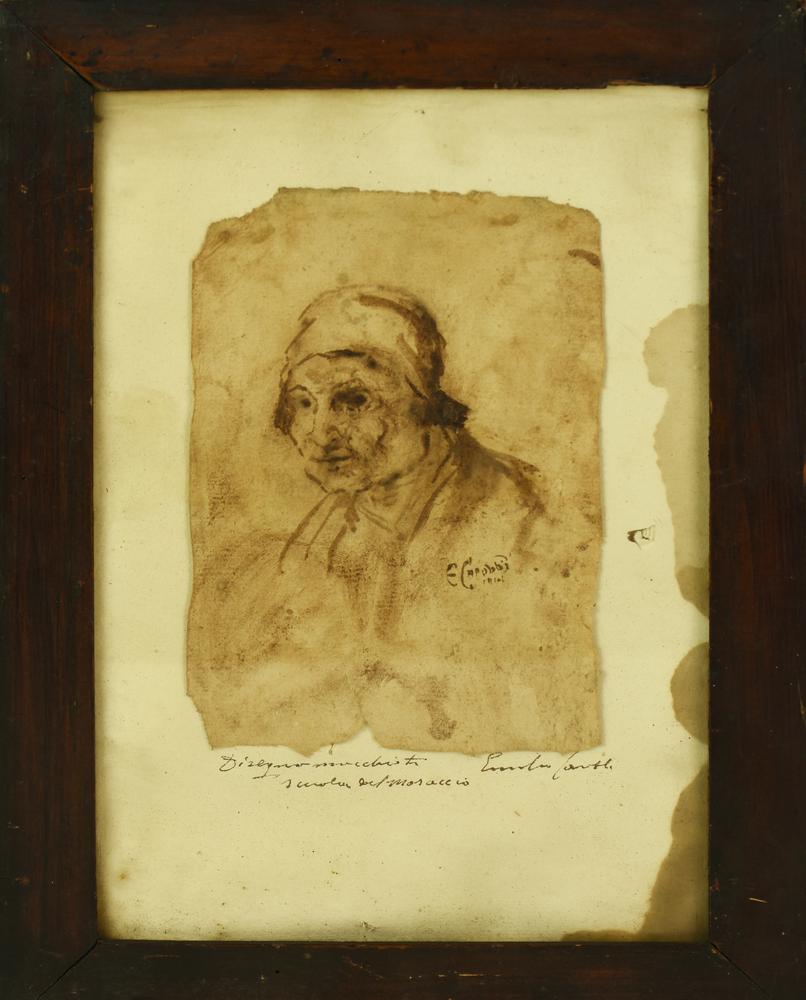 Ignoto VOLTO, 1910 china su carta, cm 18x12 firma e data