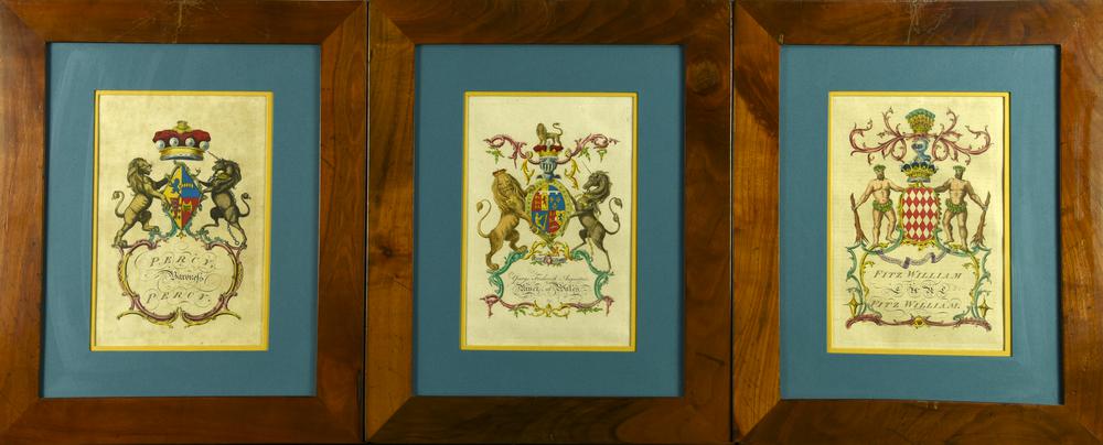 Scuola del XVIII secolo STEMMI ARALDICI DI FAMIGLIE INGLESI stampe a colori...