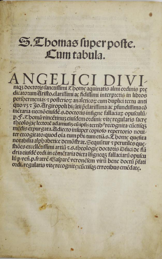Tommaso d'Aquino THOMAS SUPER POSTE CUM TABULA.ANGELICI DIUINIQUE DOCTORIS...