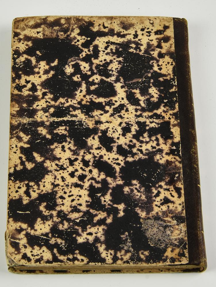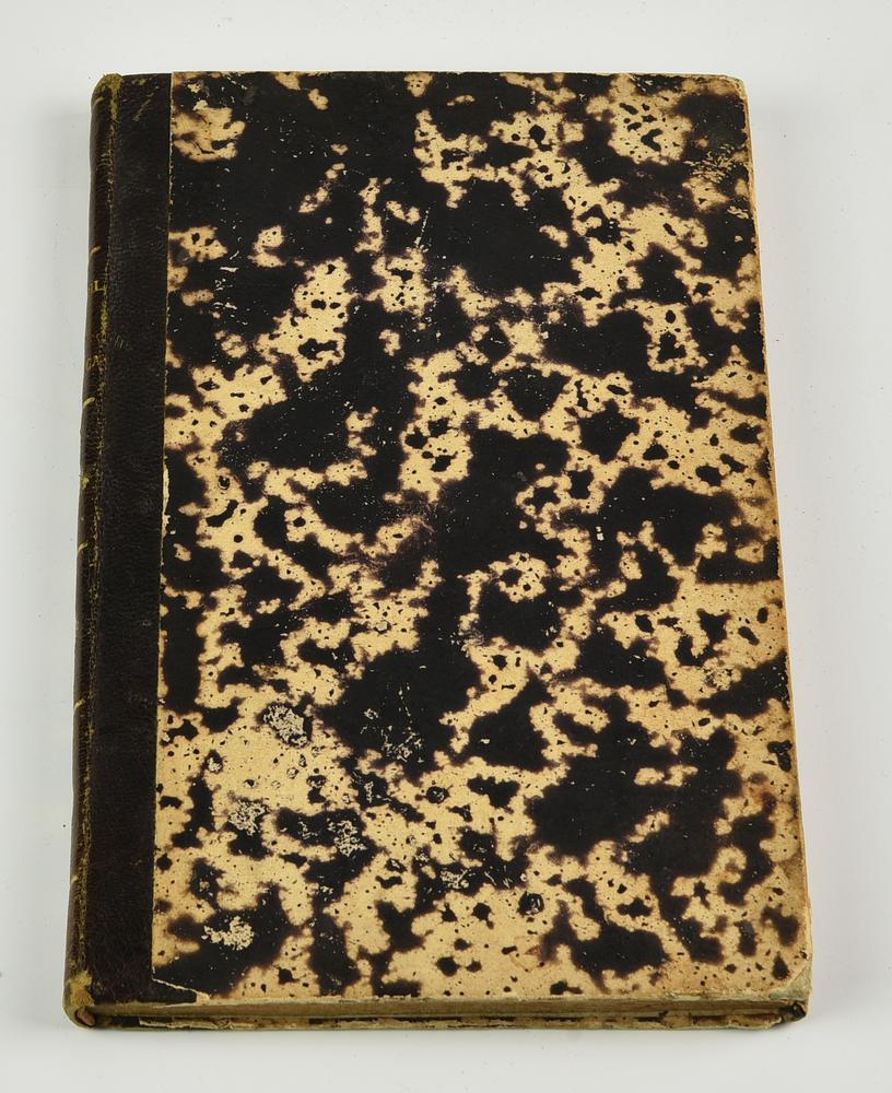 Rilegato in cartoncino, dorso rivestito in cuoio con titolo stampato a lettere d’oro