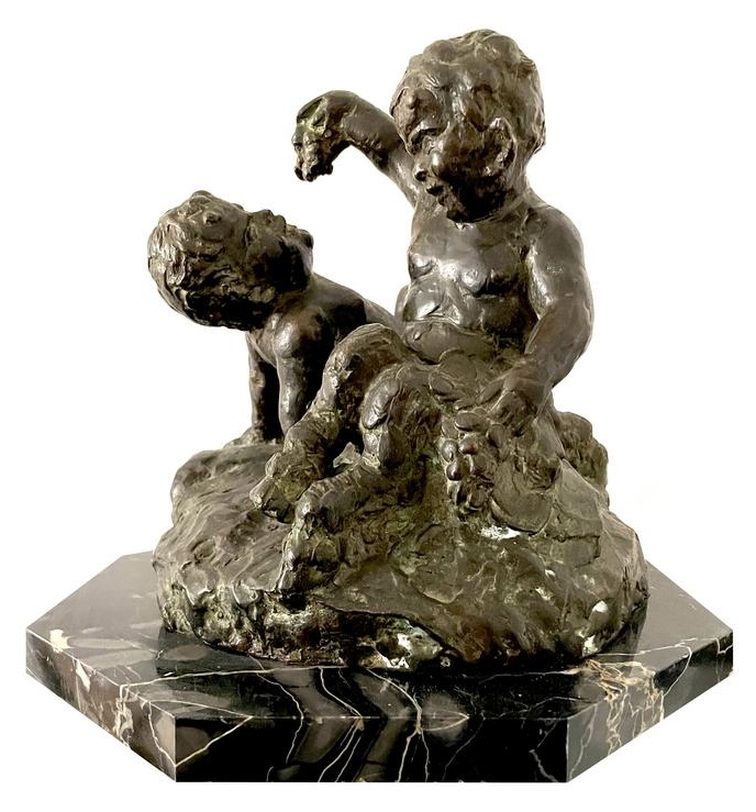Decimo Passani SATIRI CHE GIOCANO bronzo su base in marmo, h cm 24 firma