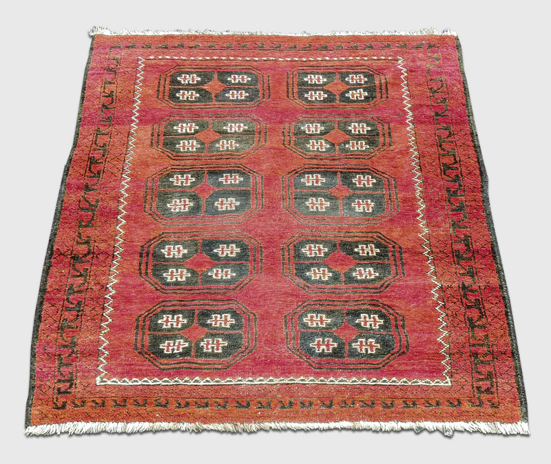 PICCOLO TAPPETO PERSIANO BELUCISTAN - SMALL PERSIAN BELUCISTAN RUG XIX secolo - 19th Century fondo rosso scuro con medaglioni ottagonali a tutto campo, colori vegetali naturali cm 135x95