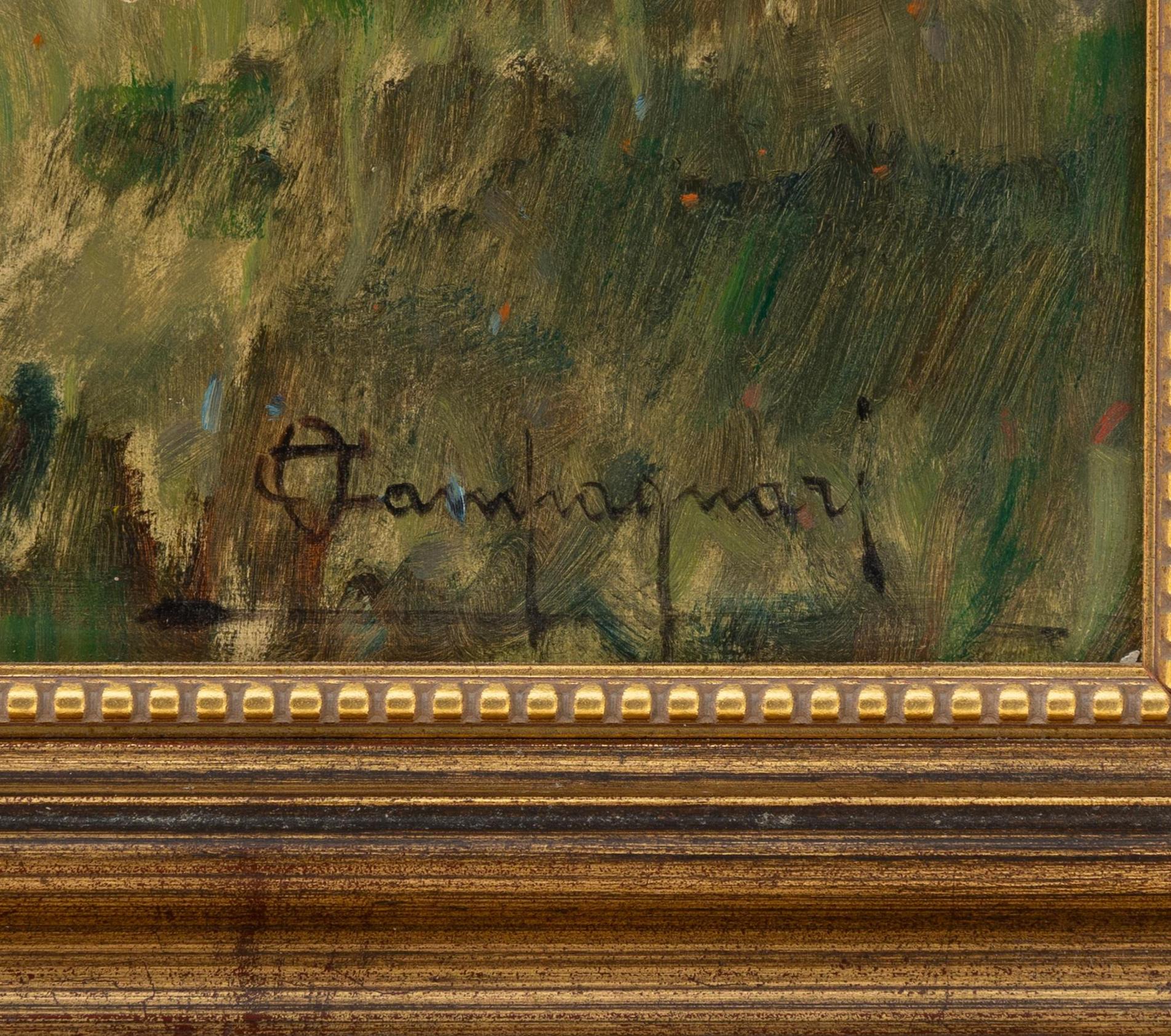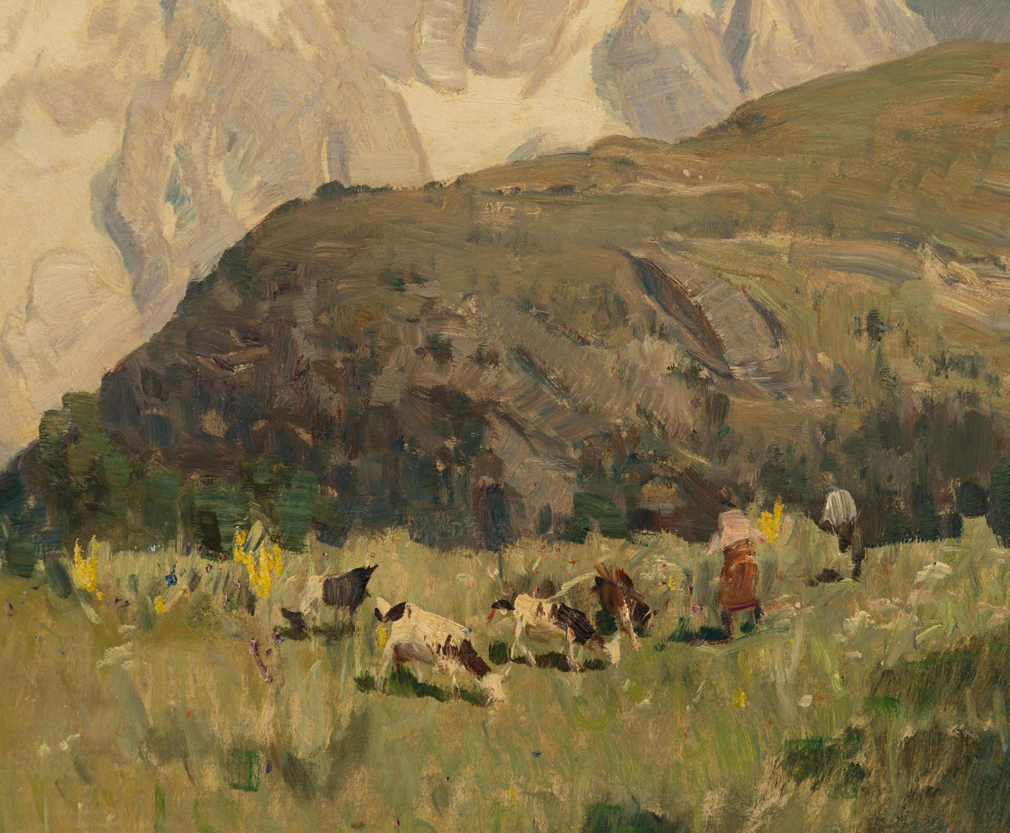 Ottorino Campagnari - Catena del Monte Bianco - e dente del gigante - Mestre 1910 - Torino 1982 - Olio su tavola cm 40x50 - Ottorino Campagnari è stato un illustre artista paesaggista dello stile tardo ottocentesco, la cui carriera artistica ha inizio fin da giovane. Si specializzò nell'affresco di scene montane e nelle vibranti rappresentazioni delle mareggiate lungo la costa ligure, in particolare nelle vicinanze di Varigotti, dove spesso soggiornava per trarre ispirazione.La sua presenza artistica è stata notevole, partecipando a numerose mostre nazionali, tra cui spicca la sua partecipazione alla Promotrice di belle arti di Torino nel 1942. Campagnari ha tenuto sia mostre personali che ha partecipato a esposizioni collettive in Italia e all'estero.Le sue composizioni si caratterizzano per la loro piacevolezza e per la capacità espressiva dell'artista. Questa capacità espressiva è indubbiamente degna di interesse, paragonabile ai suoi paesaggi. È sostenuta da una solida e attenta preparazione artistica, che gli ha permesso in molti casi di catturare in modo straordinario la bellezza e l'autenticità di un paesaggio, spesso accompagnato da figure umane, e il mondo circostante. Questa impostazione artistica è rimasta costante nel tempo, mantenendo la sua struttura e la sua suggestiva adesione alle montagne che erano care ad altri grandi maestri dell'arte come Maggi, Musso, Rolla e Angelo Abrate.È evidente che Campagnari ha mantenuto intatto il suo dialogo con la natura, preservando la genuinità delle sue immagini, la fedeltà all'ambiente e la coerenza nella testimonianza di un dipingere che ha conquistato il pubblico per il suo costante amore per l'antica "veduta" e per il suo sincero intento rappresentativo. La sua raffigurazione è sempre piacevole, pronta a catturare il profondo significato di una tradizione paesaggistica che sembra resistere a ogni cambiamento estetico. Questa tradizione è indissolubilmente legata alla cultura figurativa piemontese dell'Ottocento e del Primo Novecento.Campagnari ha sviluppato una linea espressiva distintiva e inconfondibile, dimostrando una notevole abilità nel rendere con leggerezza e delicatezza il candido manto della neve e nel catturare gli ultimi dettagli di un paesaggio in continua trasformazione con il passare delle stagioni. La sua opera è un tributo duraturo alla bellezza della natura e alla ricca tradizione artistica dell'Ottocento e del primo Novecento, che continua a influenzare e a ispirare gli amanti di un genere pittorico che, pur in un mondo in continua evoluzione, resta un richiamo sentito e rassicurante nelle giornate agitate della nostra esistenza.