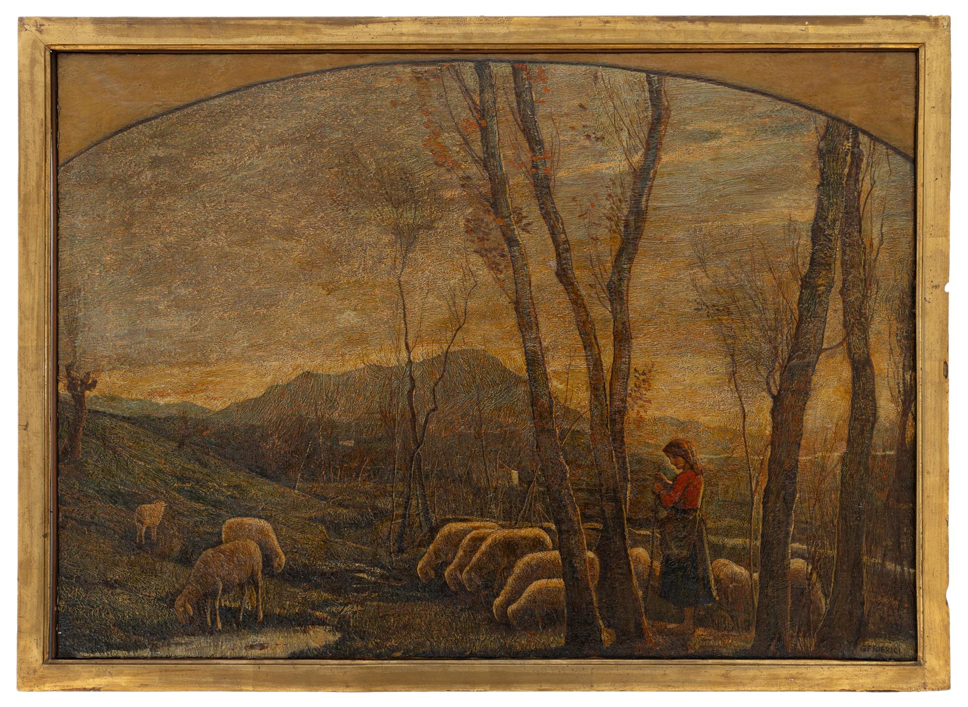 Gino Federici - Pascolo al tramonto - Milano 1888-1973 - Olio su tela cm 68,5x98,5