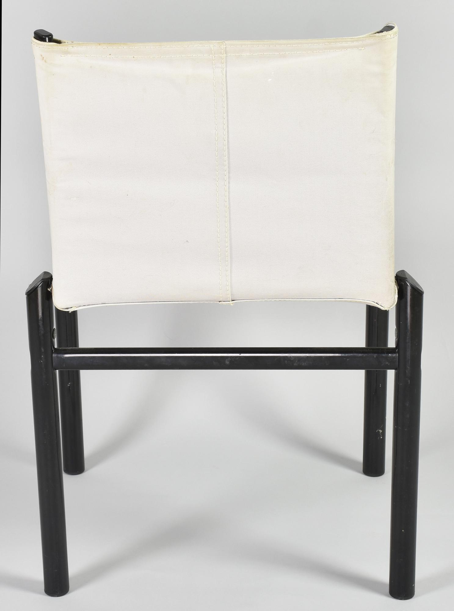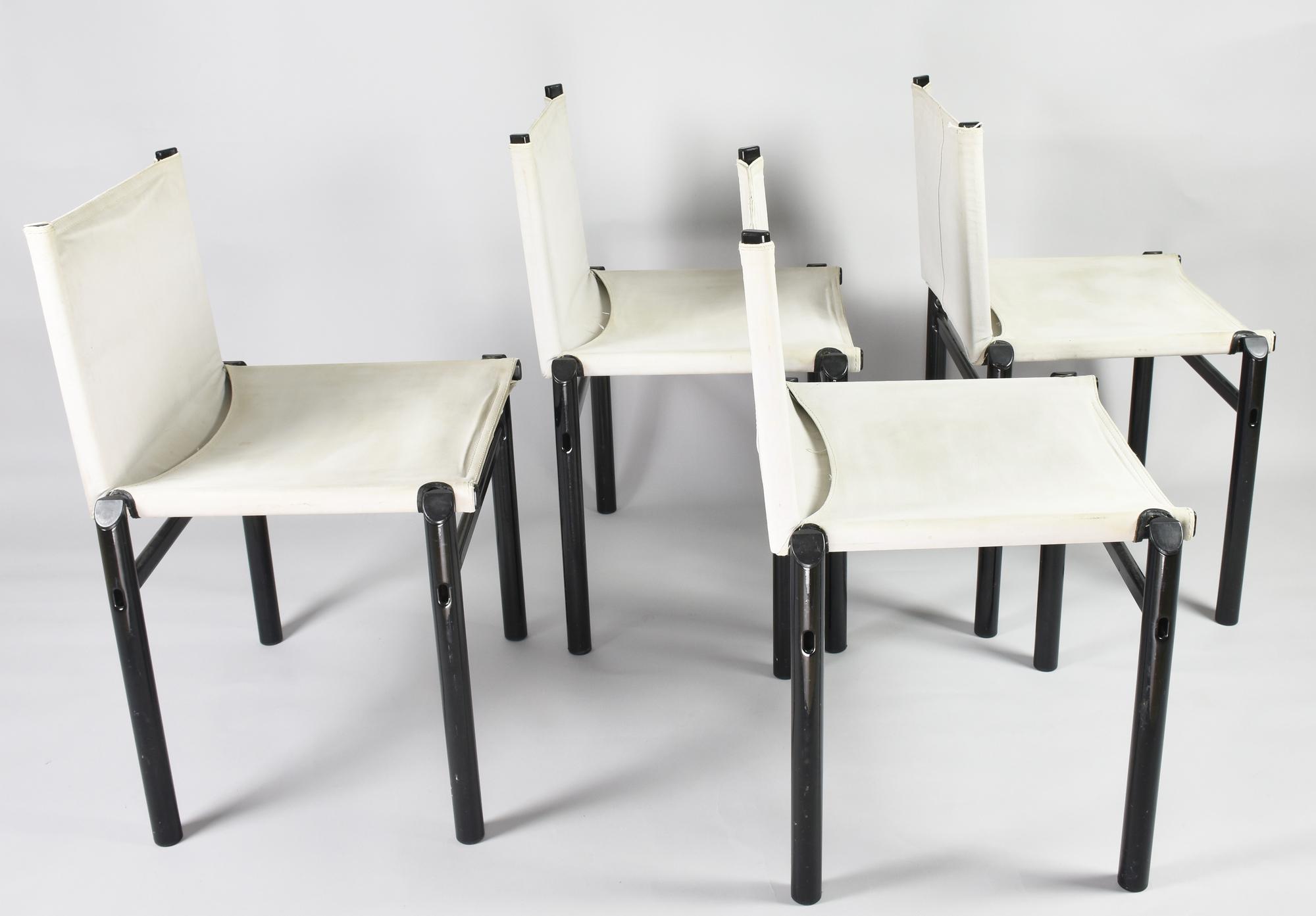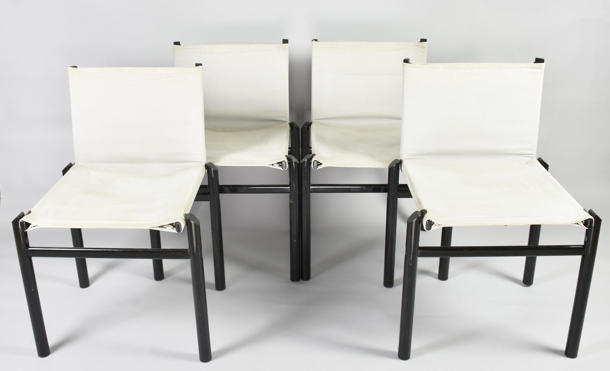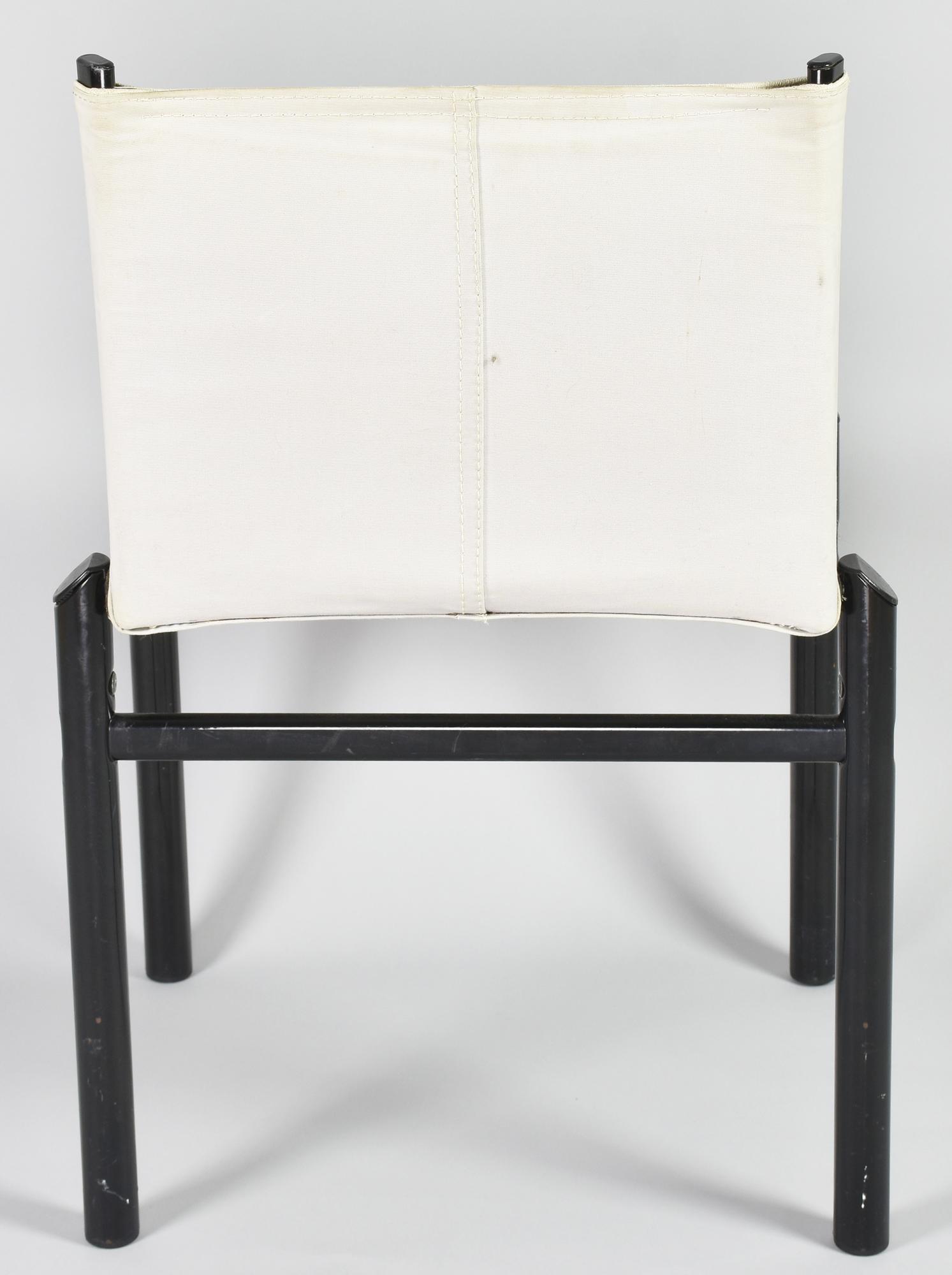 quattro sedie con struttura in metallo e seduta in tela colorata bianca